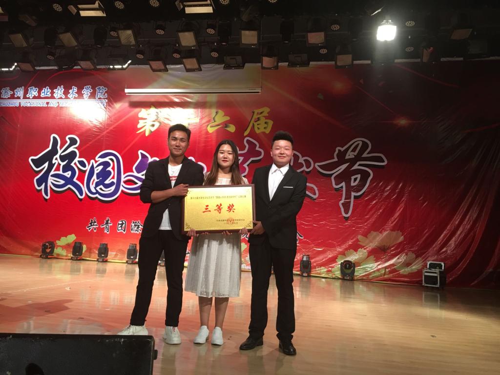 一首红歌,记录一段峥嵘岁月;一首红歌,象征一面光辉旗帜。伴着两位主持人激情澎湃的开场,一段回顾建党九十载雄伟壮丽的历程开场白拉开了整场比赛的序幕。此次比赛共有15支队伍参加比赛,在比赛台上各支队伍八仙过海各显神通,在台.上尽情的展示自己的才艺,随着最后一支队伍结束表演,比赛正式结束。此次比赛我系共有王彤、李德财、朱金书三位参赛人员,分别带来两个作品,一个是由三位共同演唱的《映山红》拿到了第五名,一个是由朱金书、李德才演唱的《我和我的祖国》拿到了第九名。