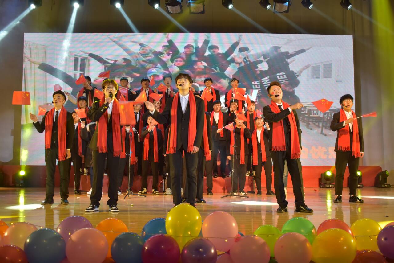 在动感欢快的开场舞《FLOWER DU SHOWER》迅速点燃全场气氛之后晚会正式开始。第二部分由19级汽检一班集体朗诵《祖国颂》中,将晚会推到最高潮,全场欢呼,都深深的陷入这激昂的朗诵声中;节目接近尾声时,一首由19级新能源二班集体合唱《我和我的祖国》带动全场齐唱,其乐融融。以精彩纷呈、高潮频起、亮点不断的节目将我院学生热爱生活、积极向上的精神表现得淋漓尽致。