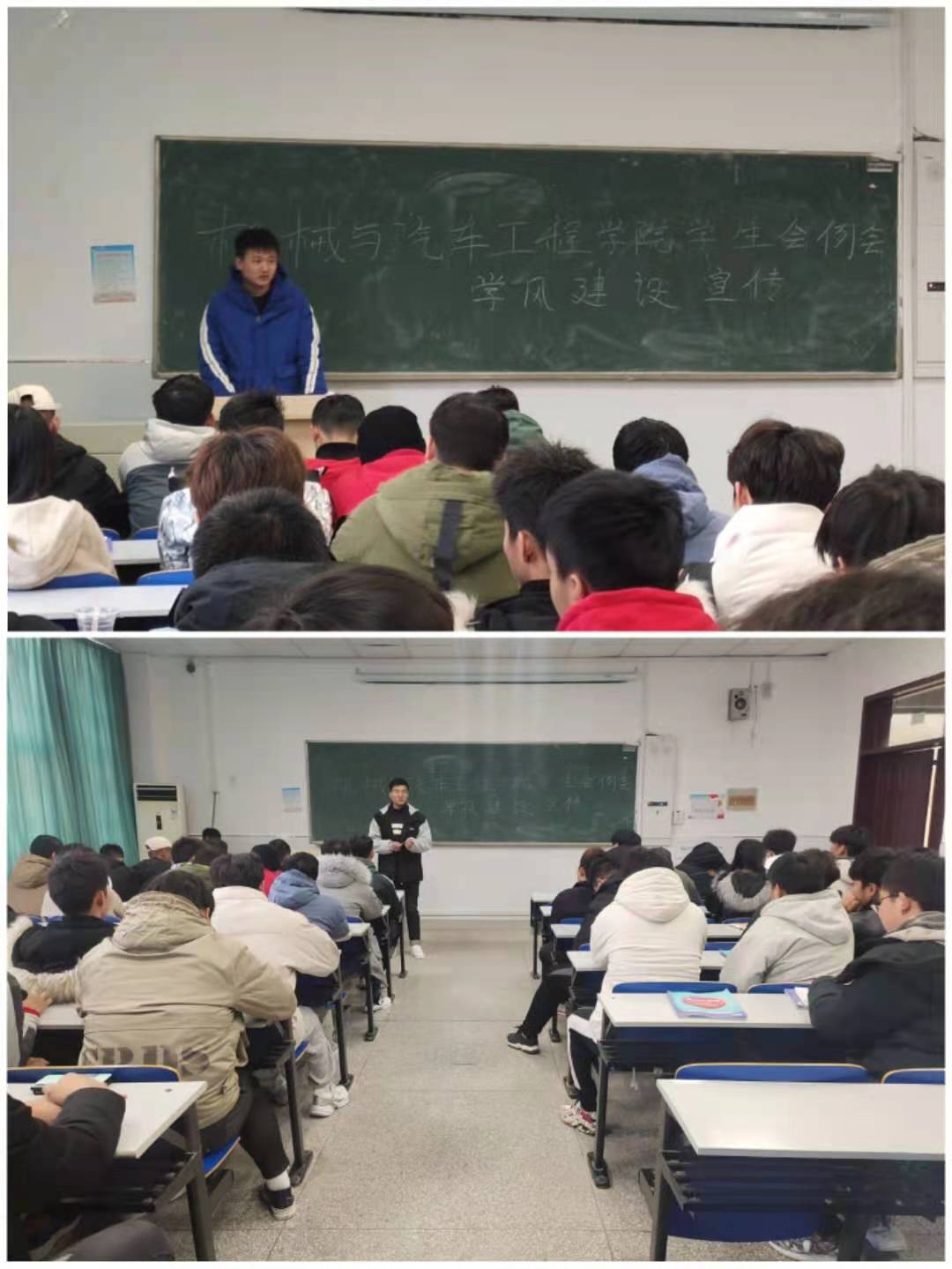 12月24日12时许,在教学楼5106教室召开机械与汽车工程学院学生会第四次例会暨学风建设宣传教育活动,全体学生会成员参加本次会议,认真学习会议要点。