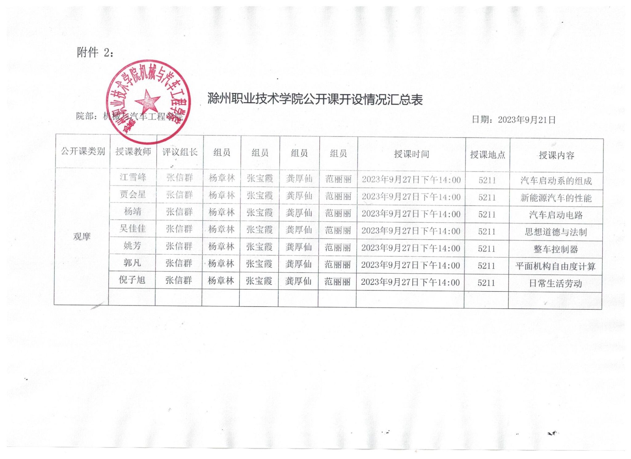 2023年金沙威尼斯欢乐娱人城机汽学院公开课开设情况公示,公示期:9月21日-9月27日,共5个工作日,若有情况请反馈至0550-3854554