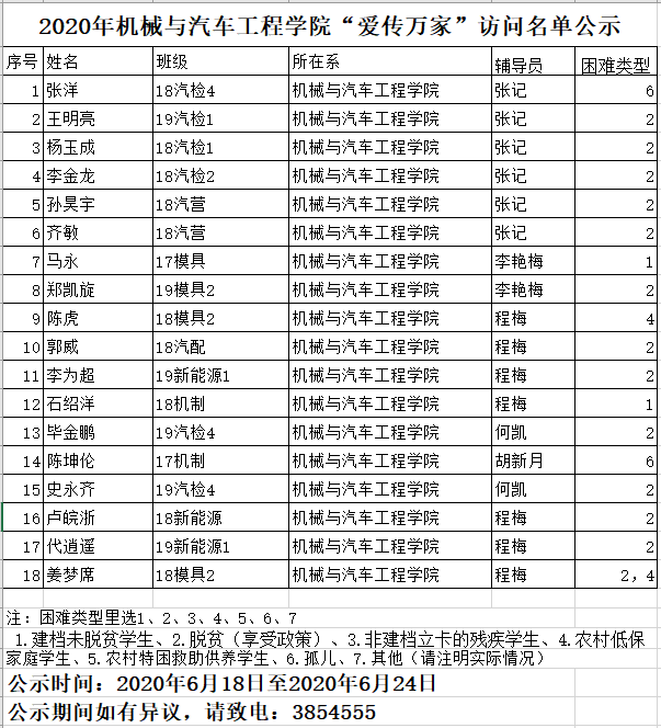机械与汽车工程学院2020年“爱传万家”访问名单公示
