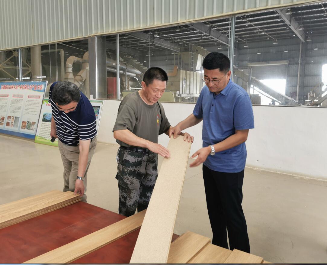 在安徽嘉农农林生态产业有限公司,穆松等一行人首先参观了生产车间,了解了公司的主营产品秸秆零甲醛环保板材的生产过程,此类环保板材是利用玉米、小麦、水稻等农产品的秸秆为原料来生产零甲醛环保高强度板材,产品主要用于家具、地板及室内装饰。同时,秸秆的使用可以有效的解决焚烧秸秆所造成的环境污染,实现了废物再利用。