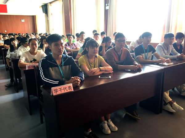 系党总支书记陈震从学院概况、如何度过大学时光、校园生活等方面,为全体新生上了第一堂课。他指出,大学是人生的新起点、新篇章,同学们要尽快适应全新的大学生活,全身心地投入其中。就此他提出了几点希望:希望同学们要牢固树立成人意识,学会自立,培养责任意识和担当意识;要树立远大理想,积极规划人生,做一个新时代具有智慧的大学生;要充分利用各种资源和平台增强自身能力,为以后走进社会打下坚实基础;他勉励同学们努力培养良好的学习习惯,向更高的学习目标进发,把自己锻炼成基础知识全面、专业知识扎实、富有独立思考能力和创新精神的有用之才。此外,他还就学院管理、安全等问题,多角度为学生提出了宝贵意见,讲话赢了新生的热烈掌声。