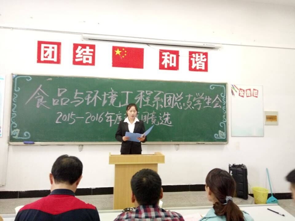 1020日中午,食品系2015年学生会换届选举大会在2113教室隆重举行,系团总支书记、全体辅导员及全体学生干部参加会议并参与投票。