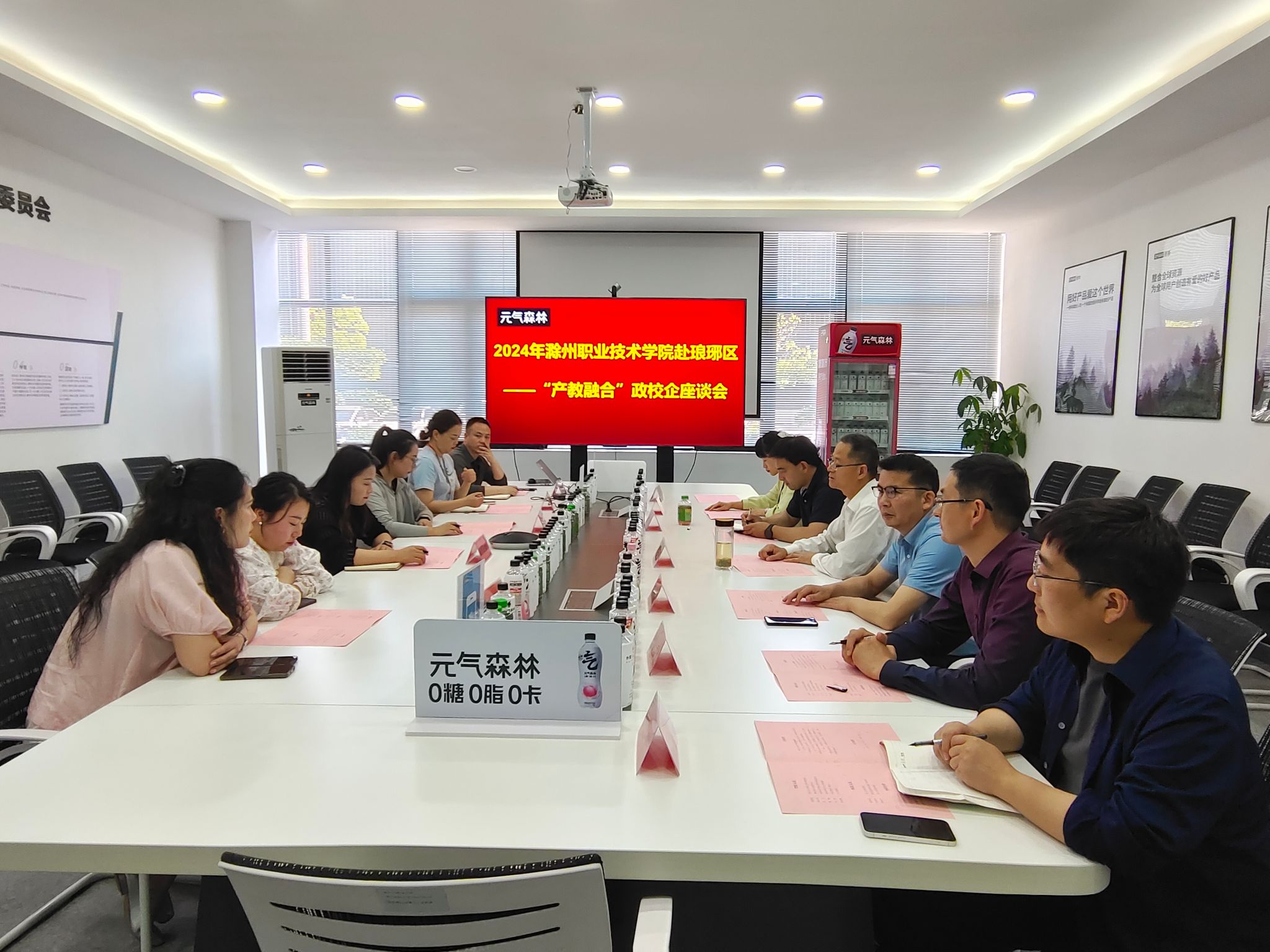 最后在元气森林(安徽)饮料有限公司,访问一行人与元气森林(安徽)饮料有限公司、昇兴(安徽)包装有限公司、安徽聚力威新材料有限公司、滁州润翰微波科技有限公司的代表进行“产教融合”政校企座谈会。