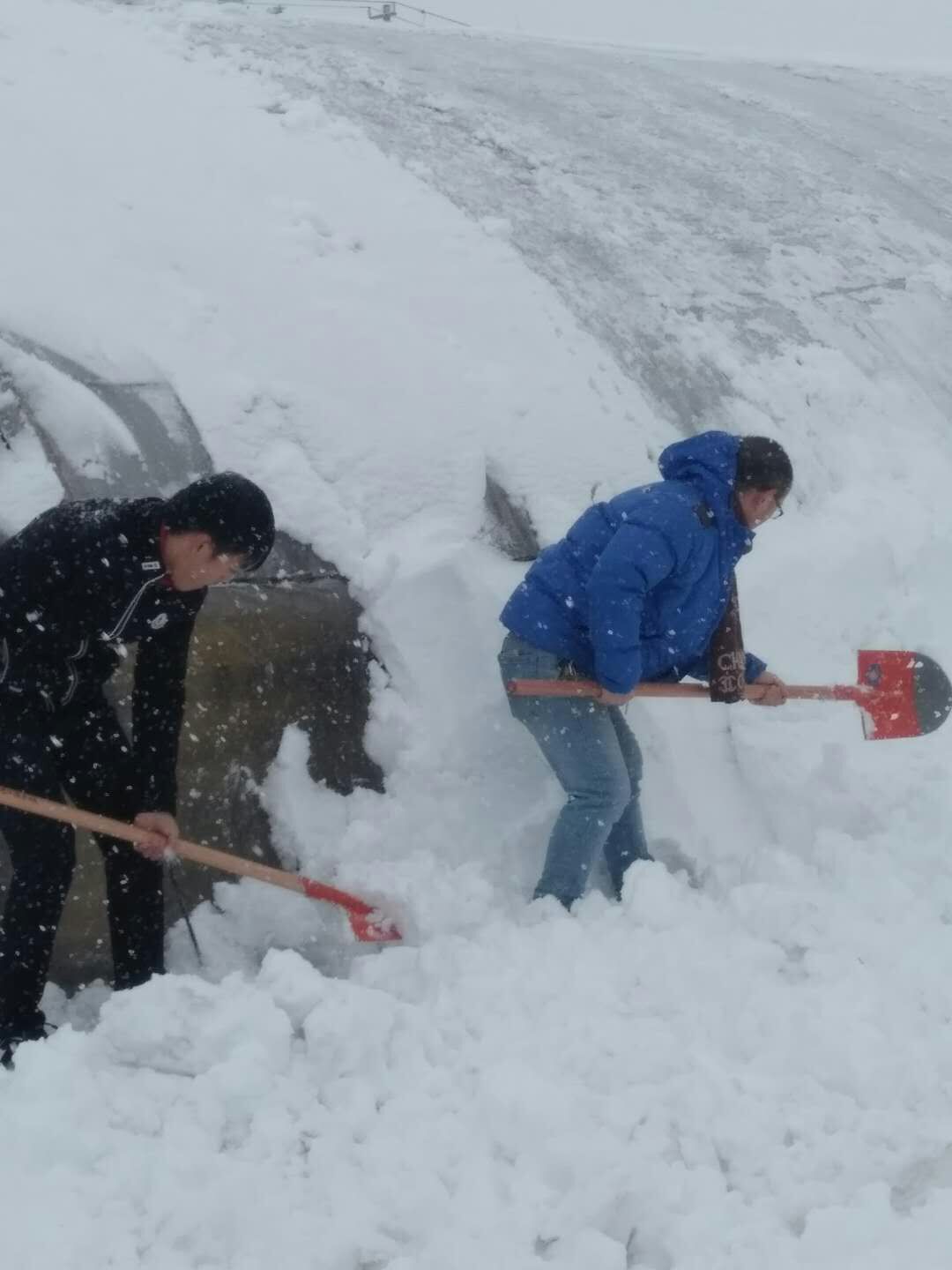 系领导现场指挥,系秘书孟飞带领专业教师江生泉、汤士勇、刘国山及部分16园林、16园艺学生开展清除大棚积雪工作,一部分师生用棍子把大棚上的积雪顶掉,一部分师生用铁锹清除大棚四边的积雪,大家干劲十足,不畏严寒、挥舞着铁锹、相互配合,干得热火朝天,鞋袜湿透全然不知!