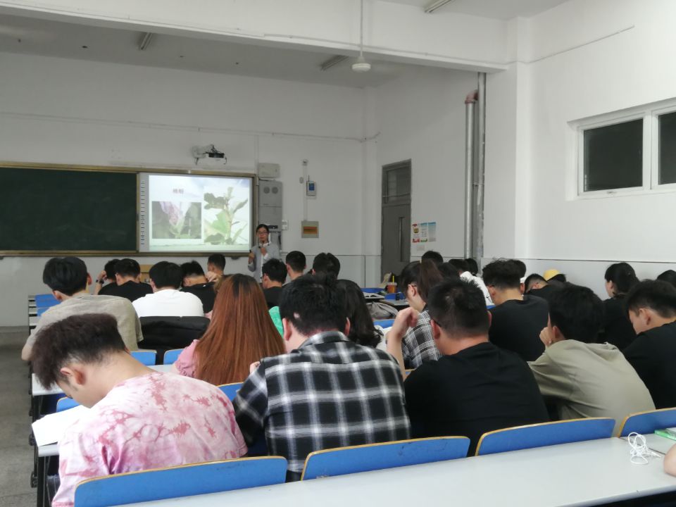 涂清芳教师首先给学生介绍了园林植物生产应用现状及问题,然后分析了园林植物生产应用发展趋势,最后结合滁州地区的自然条件详细介绍了华东地区公园绿化的土肥水如何管理等养护技术并强调了不同季节养护要点。