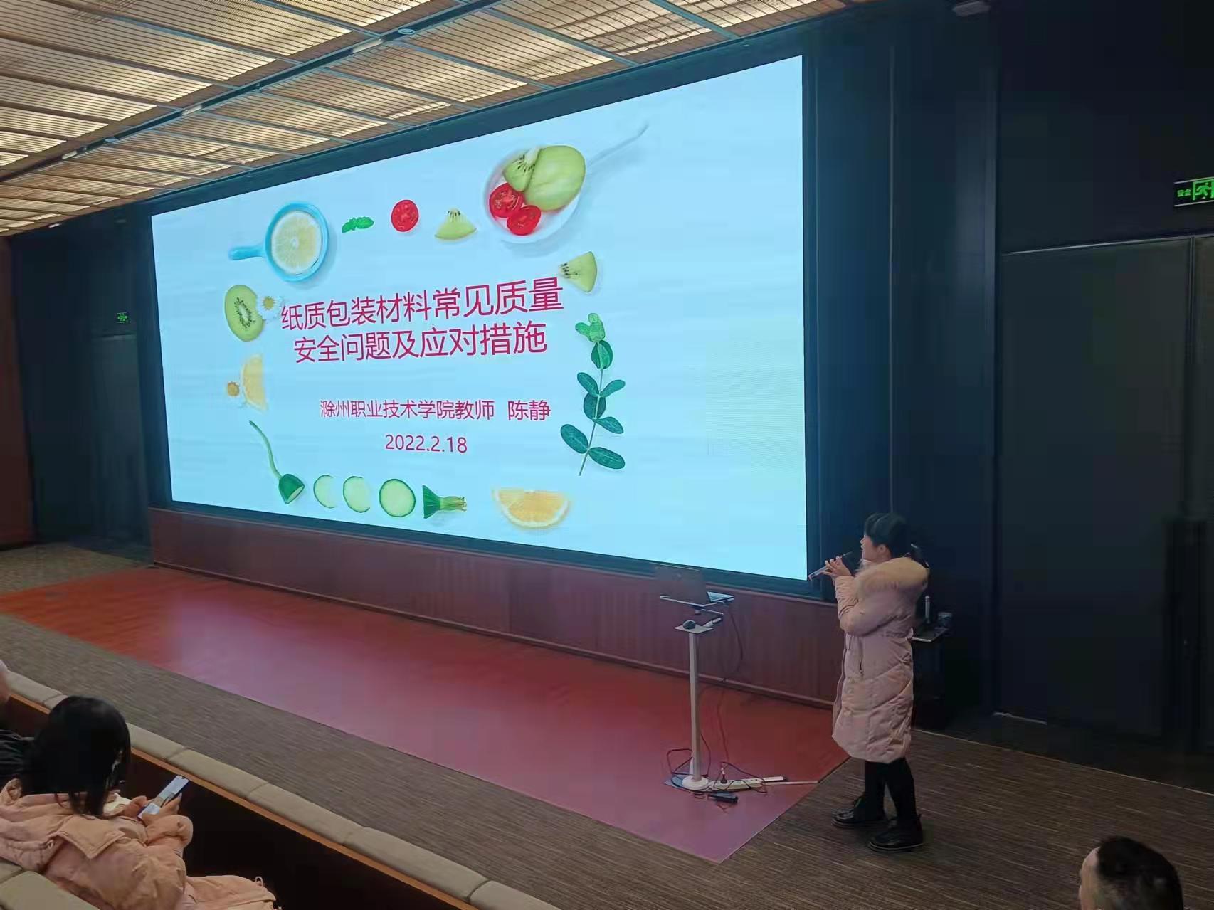 会上,我院教师陈静开展了《纸质包装材料常见质量安全问题及应对措施》交流讲座,之后与会人员就纸包生产问题进行了深入交流与讨论。最后嘉美集团生产行政总监沙荣进行了会议总结。