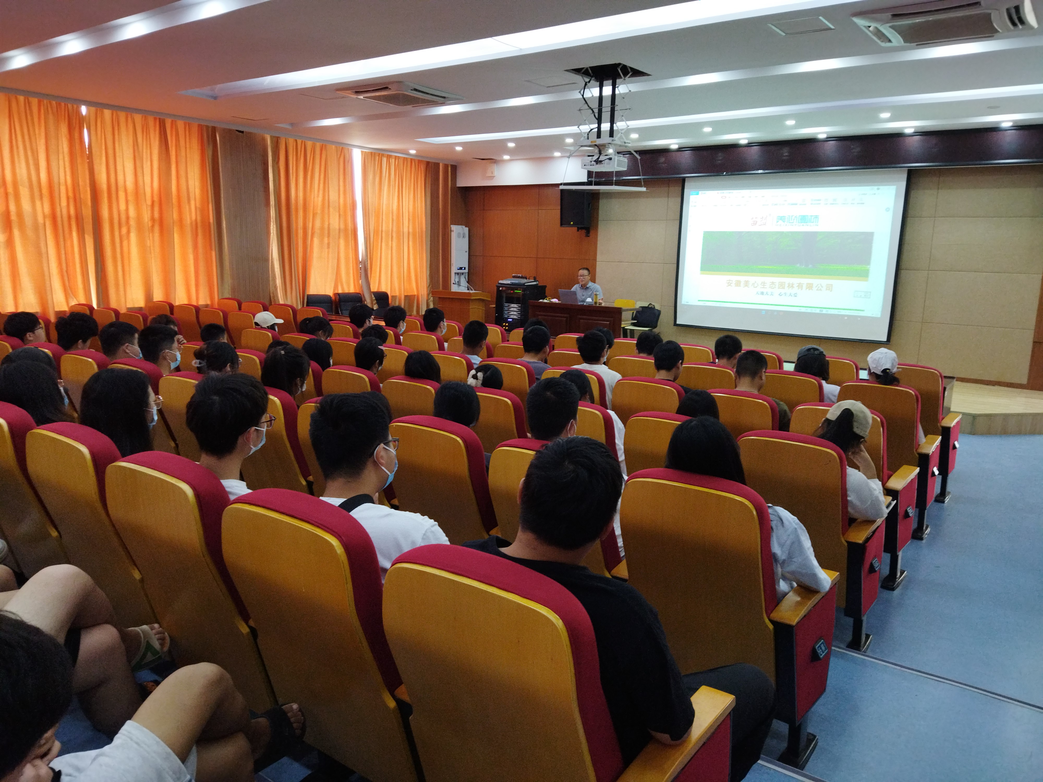 5月27日上午,安徽美心生态园林有限公司总经理徐之田应邀到金沙威尼斯官网食品与环境工程学院做学术报告,2020级园林技术专业学生以及园林系部分专业教师近200人共同聆听。报告会由梁建军院长主持。