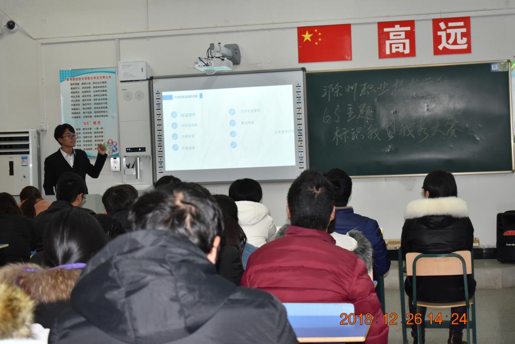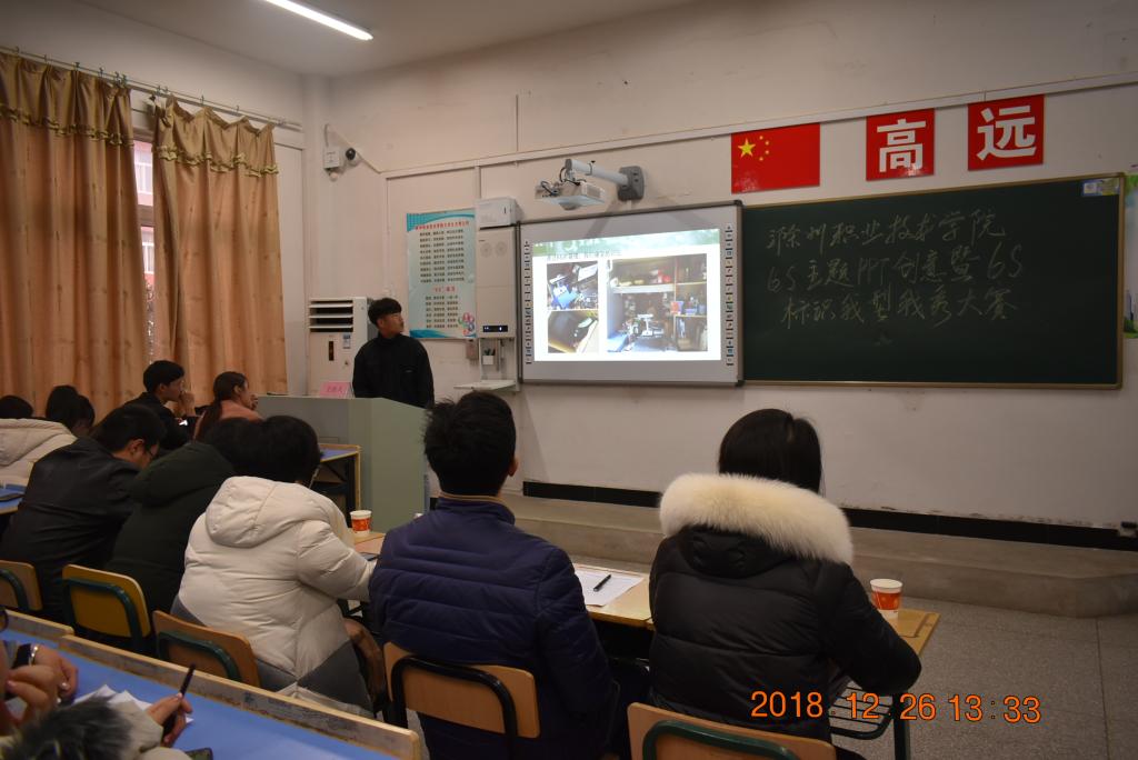 为进一步加强金沙威尼斯官网学生公寓6S管理工作,推进公寓6S文化建设,提升学生群体综合素养,根据《金沙威尼斯欢乐娱人城2018年度学生公寓6S管理工作计划》,汽车系和食环系于12月26日联合举办“6S主题PPT创意暨6S标识我型我秀”大赛。