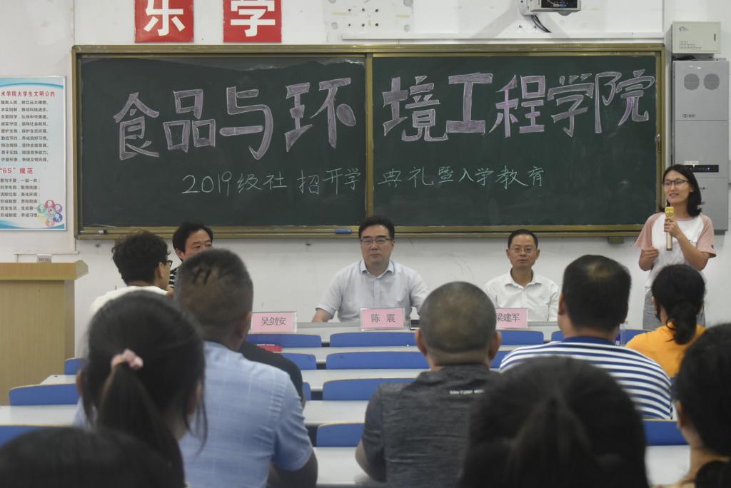 下午1点,食环学院及时组织召开了19级社招新生开学典礼暨入学教育,院长梁建军和书记陈震分别讲话。