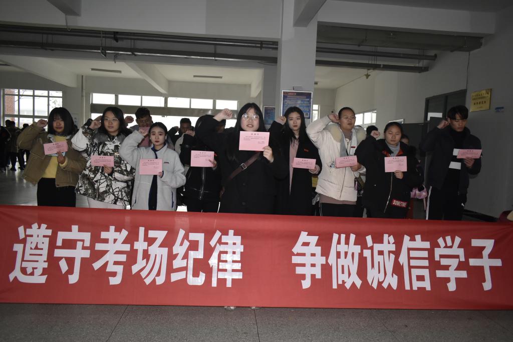 期末考试临近,为了营造良好的考试氛围、净化考场环境、杜绝有失诚信的舞弊行为,食环学院于12月26日组织开展了“诚信考试”主题活动,入党积极分子及团总支学生会全体成员参加了活动。