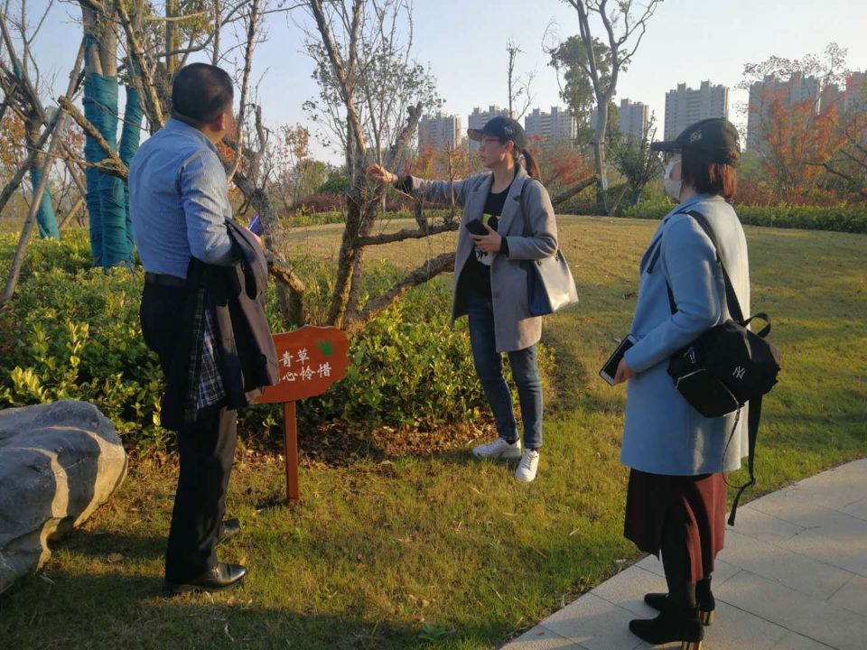 支部书记涂清芳,党员贾雪晴、李晨、薛正帅等多名教师对接滁州苏滁产业园城市物业管理有限公司,于11月6日来到公司管辖的清流花谷、鱼尾狮公园,针对公园部分植物种植、养护不当问题分析原因,找到解决措施,针对部分区域植物搭配和景观不良现象,提出改造建议。同时,达成进一步合作意向,协助苏滁产业园区各大公园进行植物挂牌工作。