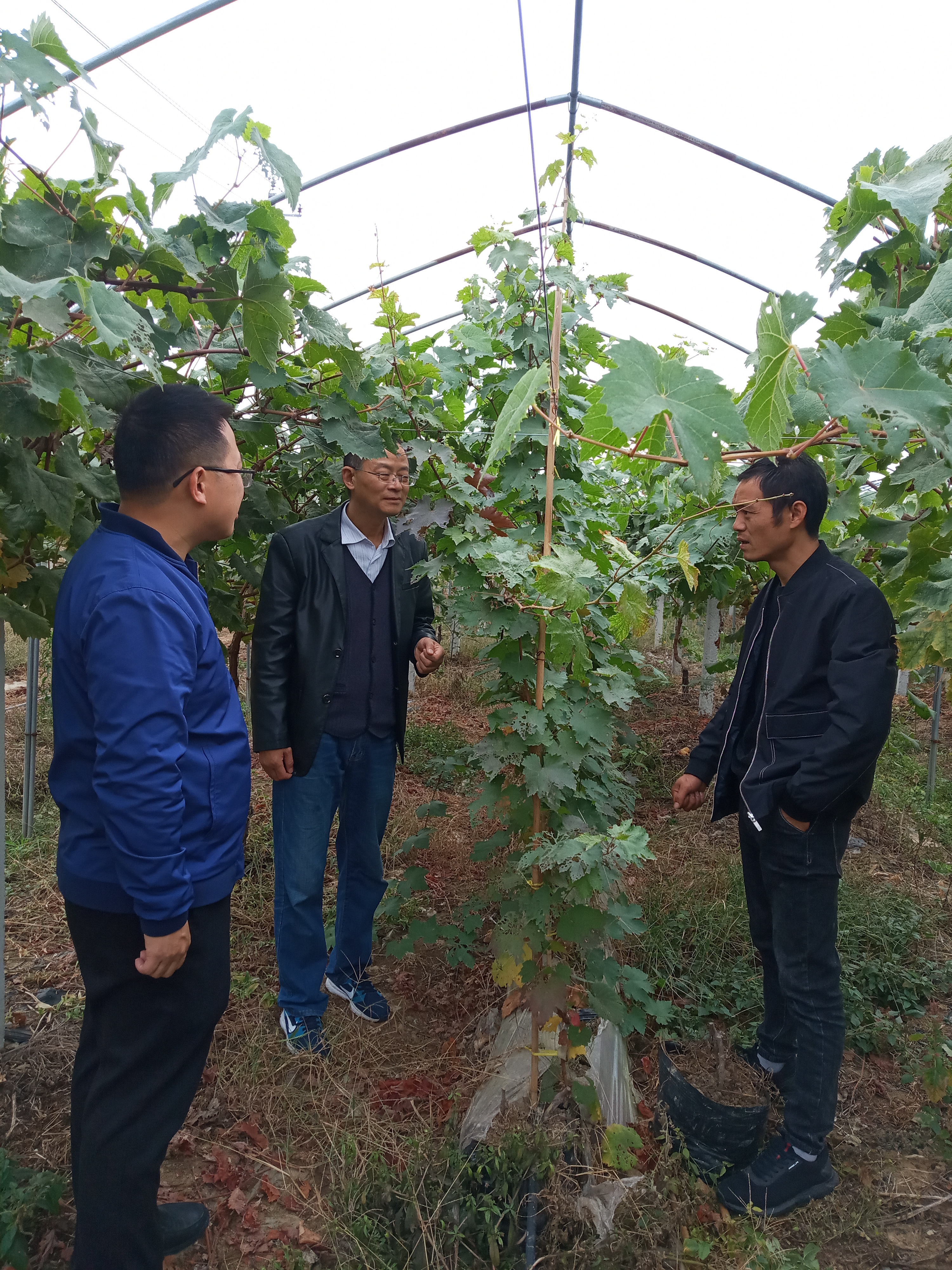 学院院长、支部党员梁建军教授和园林园艺系主任江生泉副教授于11月初来到定远县仓镇,深入田间地头,为葡萄种植户讲授种植技术,解决农户种植过程中的技术难题,并进行现场指导。