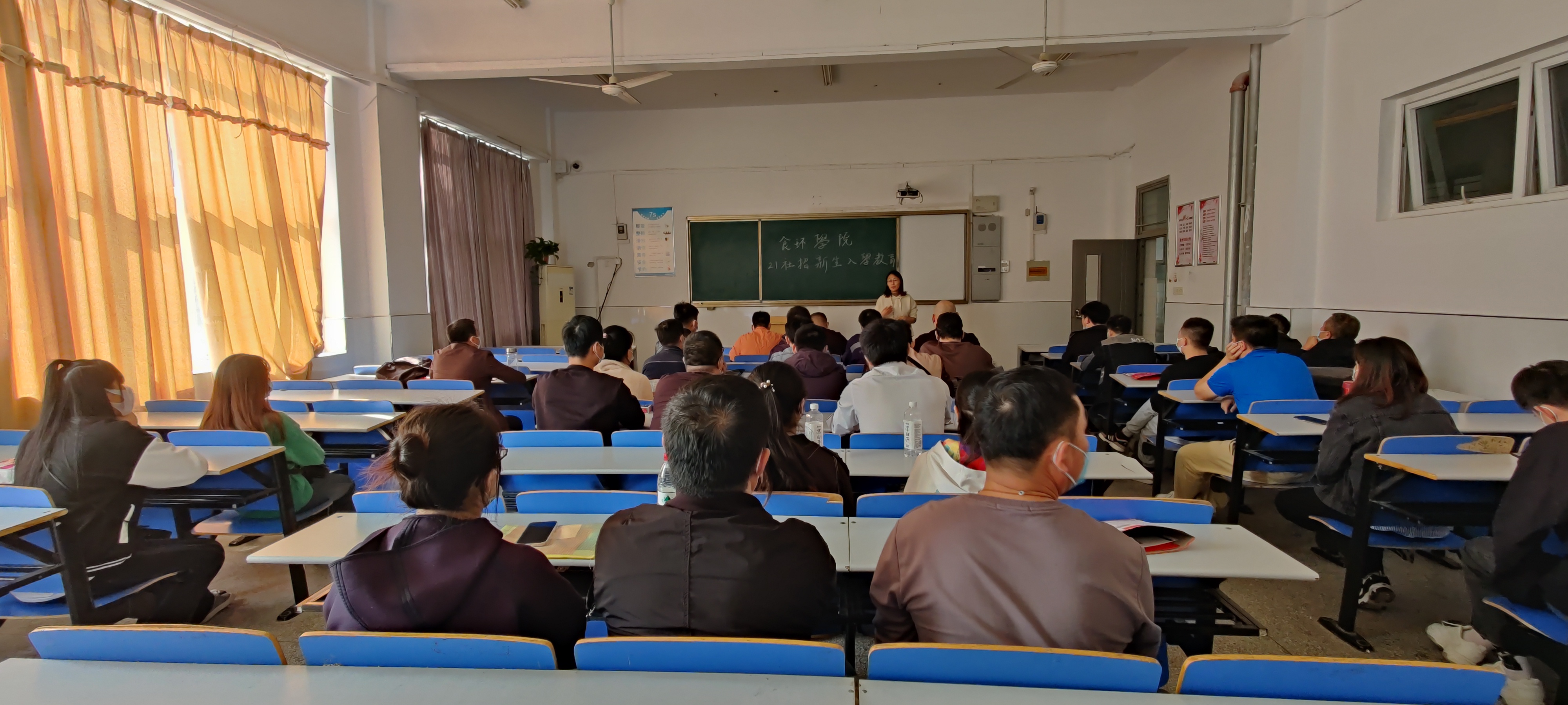 下午1点,食环学院召开了21级社招新生入学教育暨第一次班会,学院党总支副书记兼辅导员张功会对新生们的到来表示热烈欢迎,介绍了校情院情和录取专业,围绕培养目标、教学形式、考核方式等向新生们做了详细介绍,鼓励他们珍惜学习机会,端正学习态度,遵守学校管理规定,完成预定学习任务,德智体全面发展,顺利毕业。