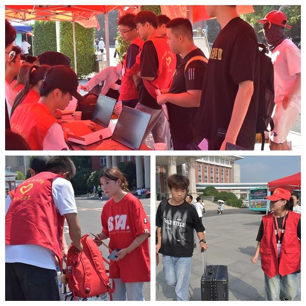 迎新现场,新生辅导员、专业教师、志愿者们早早来到报到点,热情、周到、高效地为新生提供全方位的优质服务。校、院领导也亲临迎新现场安排指导工作,看望慰问新生及志愿者,仔细询问新生报到、开学安排等情况,与新生及家长亲切交流。无论是校门口、接站点,还是宿舍,随处可见“红马甲”忙碌的身影,志愿者们有条不紊的引领新生进行报到注册、指路答疑、积极帮助新生搬运行李、入住宿舍……他们用实际行动践行志愿者精神,获得了新生和家长的一致好评。