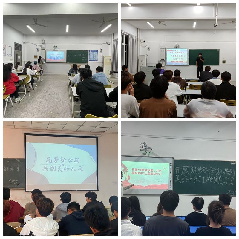 此次主题团日主题为“筑梦新学期,共创美好未来”。活动由各团支部书记主持,带领同学们重温了学校宣传片,帮助同学们进一步熟悉学校基本情况,减少了同学们初入大学的迷茫。随后,介绍了学院的专业分类和人才培养方案,鼓励和引导同学们合理规划大学学习和生活,制定新学期计划,端正学习态度,积极参加各项活动,不断提高综合素质和能力。最后,活动结合宿舍安全、网络安全、心理健康以及社会道德规范等方面内容,要求同学们严格遵守学校和学院各项规章制度,提高安全防范意识。