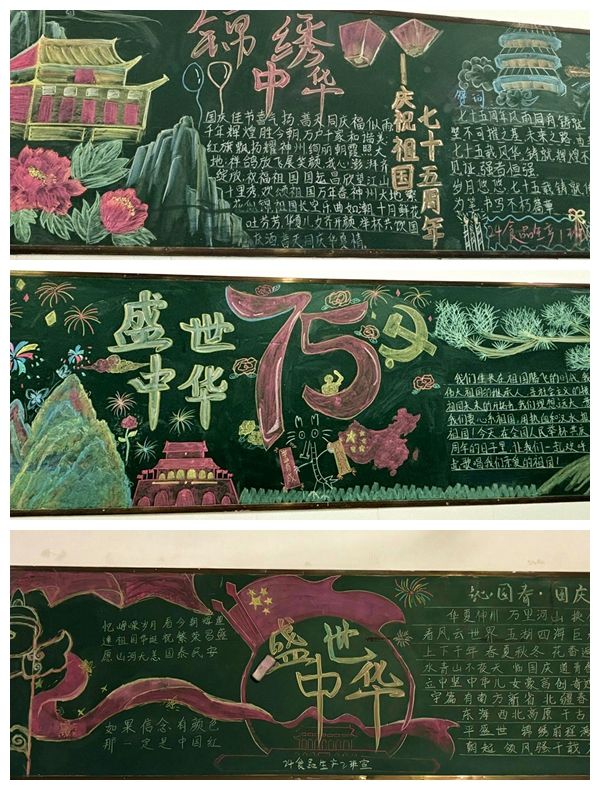 秋风送爽,丹桂飘香,恰逢伟大祖国迎来她的75周年华诞之际,我院精心策划并成功举办以“峥嵘岁月·青春献礼”为主题庆祝中华人民共和国成立75周年黑板报创作活动。此次活动旨在激发全校师生的爱国主义情感,回顾新中国成立至今波澜壮阔的历史征程,展现青年学子对祖国美好未来的憧憬与期许,进一步增强集体荣誉感和社会责任感。