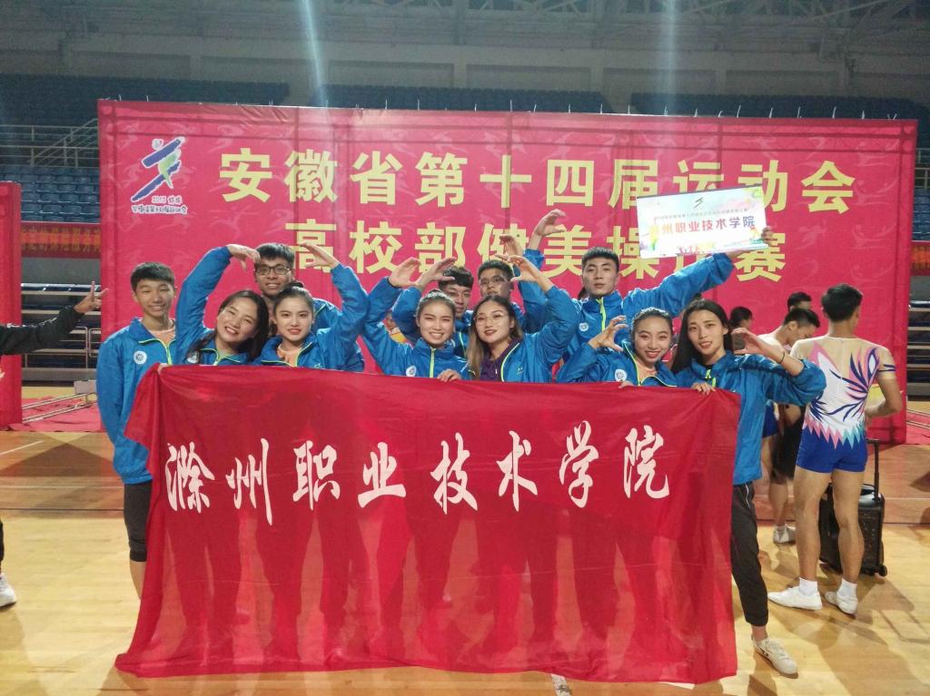在刚刚结束的安徽省第十四届运动会高校部健美操比赛中,食环系16食品营养与检测2班的张港、杨雨晴和17园艺班的姚宽三名同学,在教练员王厚红老师的带领下,与金沙威尼斯官网其他运动员一起,奋力拼搏,荣获了包括男子五人组、女子五人组、混双、混合五人等多个组别的6金1银的骄人成绩。