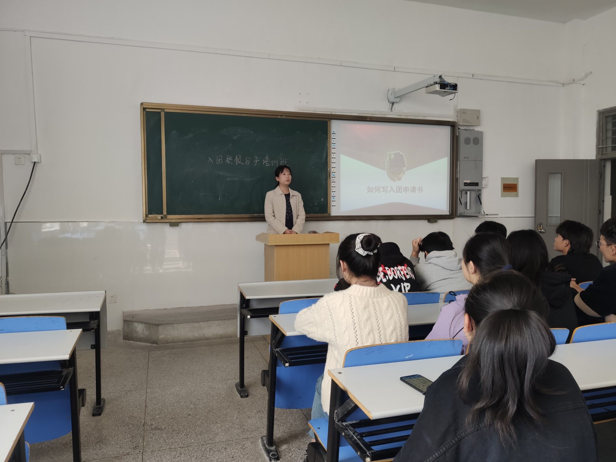 团总支指导老师李瑞瑞做动员讲话,希望所有新团员珍惜入团机会,时时处处用共青团员的标准严格要求自己,积极开展网上主题团课大学习,并在今后的学习和生活中起模范带头作用。19级团支书分别向新团员介绍了中国共青团的光辉历史、《中国共青团章程》,早期共青团历史人物介绍,以及身为团组织成员的标准和应具备的素质,强化团员意识,争做四有青年。并就入团志愿书的填写要求做详细讲解。最后,全体团员面向团旗庄严宣誓。