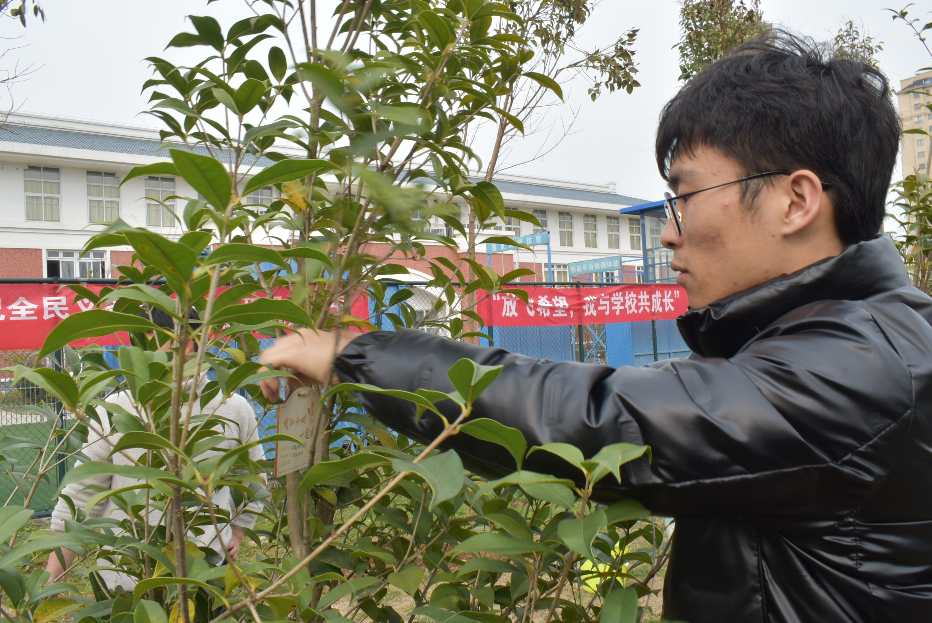 活动中,志愿服务队队员个个热情高涨,大家分工明确,有的认领树苗,有的拿着铁锹为小树培土,有的拿着水桶为树苗浇水。经过一个小时的忙碌,一颗颗小树在微风中摇荡,看着它们大家的脸上露出了满意的笑容。