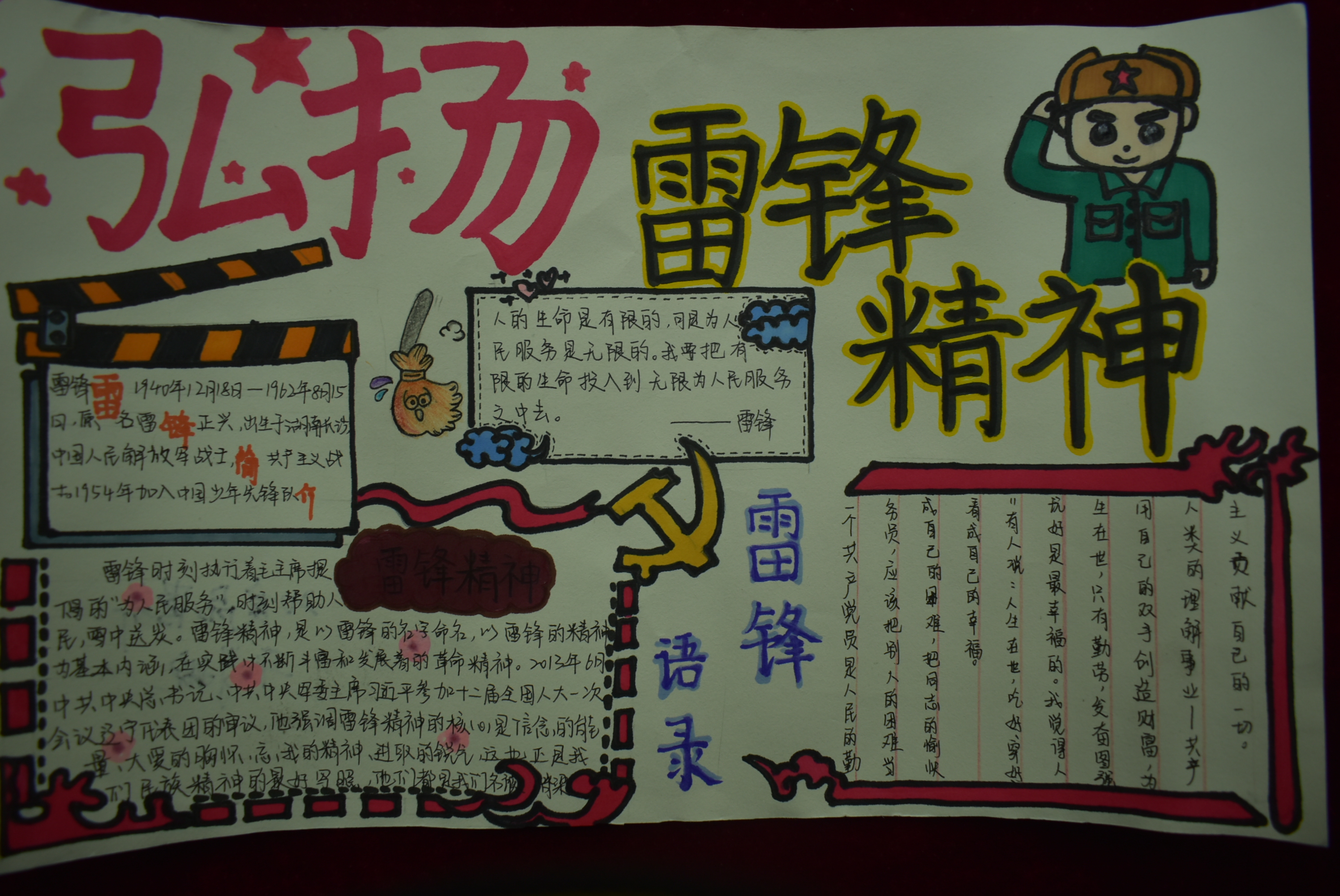 活动期间各班积极参与,以丰富多彩、图文并茂的形式在手抄报上展示了弘扬和学习雷锋精神等宣传内容,以文字和色彩渲染了红色基因,引导同学们将学雷锋精神融入到学习和生活中。经过认真评选,评选出一等奖3个,二等奖5个,三等奖7个。