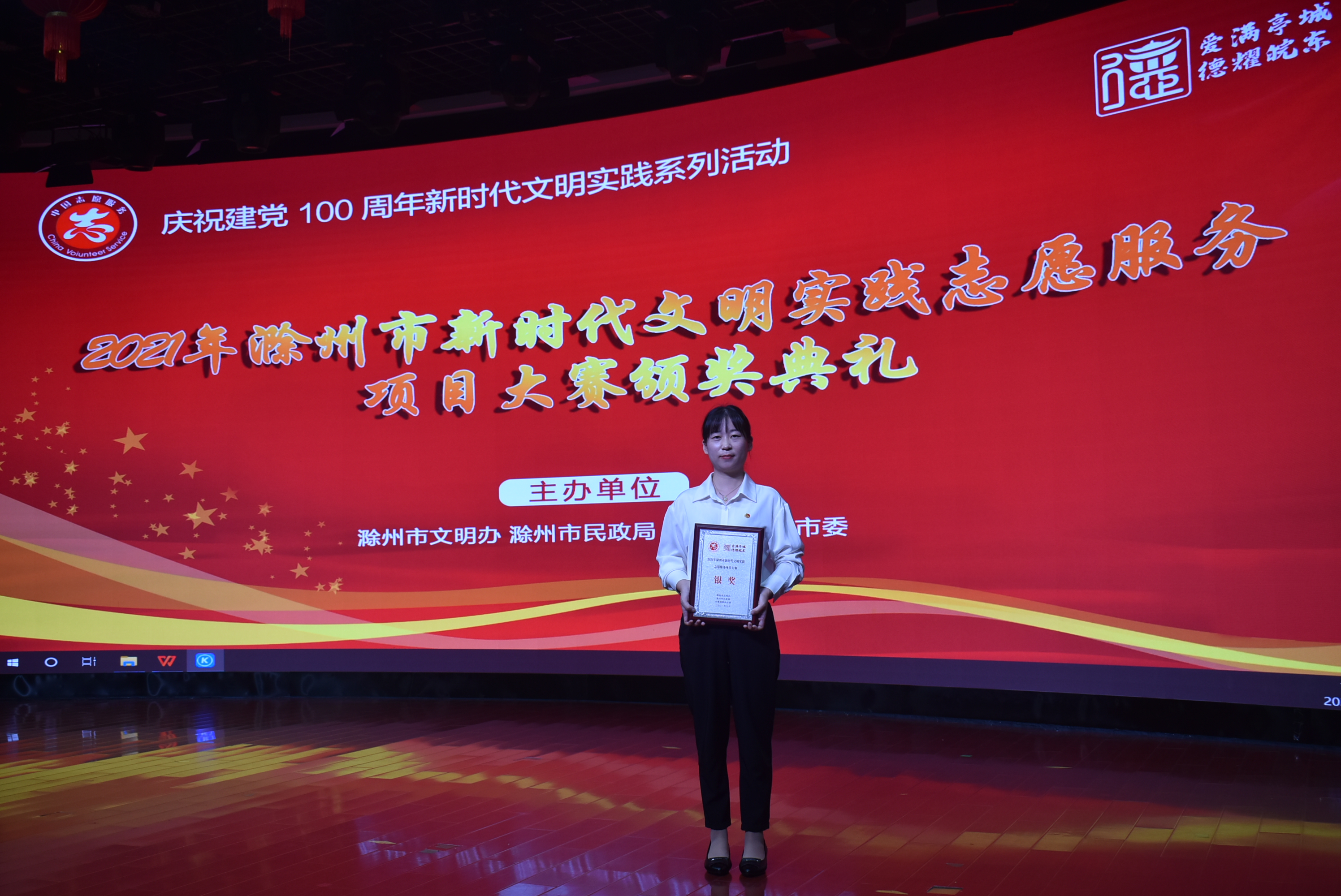 9月29日下午,2021年滁州市新时代文明实践志愿服务项目大赛在滁州市第二实验小学报告厅举行。金沙威尼斯官网食品与环境工程学院“萤火虫·环保”志愿服务项目在比赛中喜获银奖,团总支指导老师李瑞瑞作为项目负责人作现场汇报,经过激烈的角逐,最终取得银奖的好成绩!