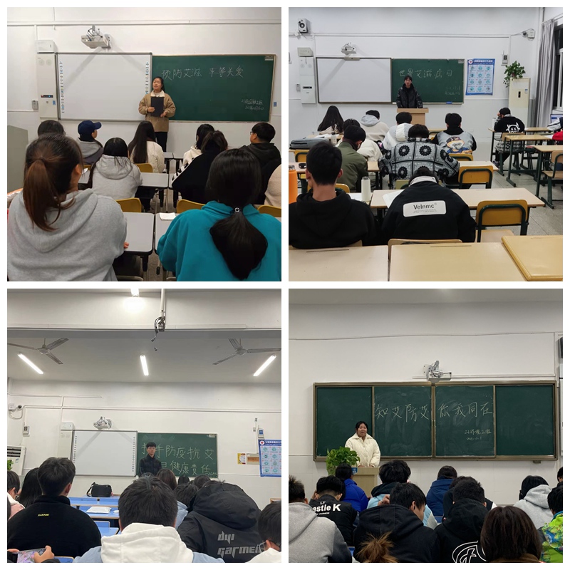 12月1日是“世界艾滋病日”,各班团支书分别介绍了艾滋病相关知识,帮助同学们了解“艾滋病的由来”、“艾滋病如何传播”、“如何预防艾滋病”、“怎样正确对待艾滋病患者”,“消除对艾滋病患者的歧视”等。引导同学们正确认识艾滋病问题,有效预防艾滋病,帮助学生树立“每个人都是自己健康的第一责任人”理念,从培养健康的生活观念和良好的卫生习惯做起,促进学生健康成长。