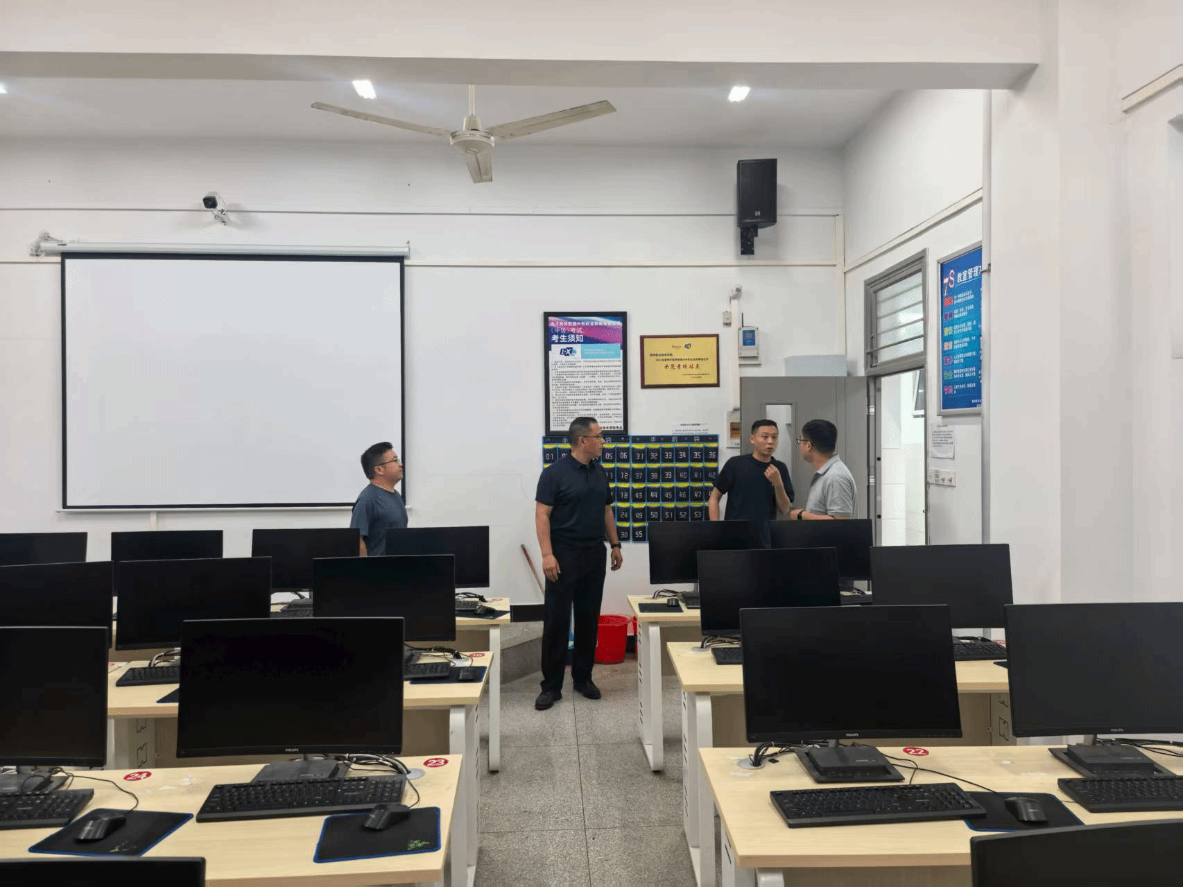 为了确保新学期教学工作的顺利开展,为师生营造一个安全、稳定的教学环境。8 月 26 日下午,商学院党委书记李超、院长程震、教学秘书张飞及商贸实训中心管理人员共同组成检查小组,对学院实训和教学场地进行了全面细致的安全检查。