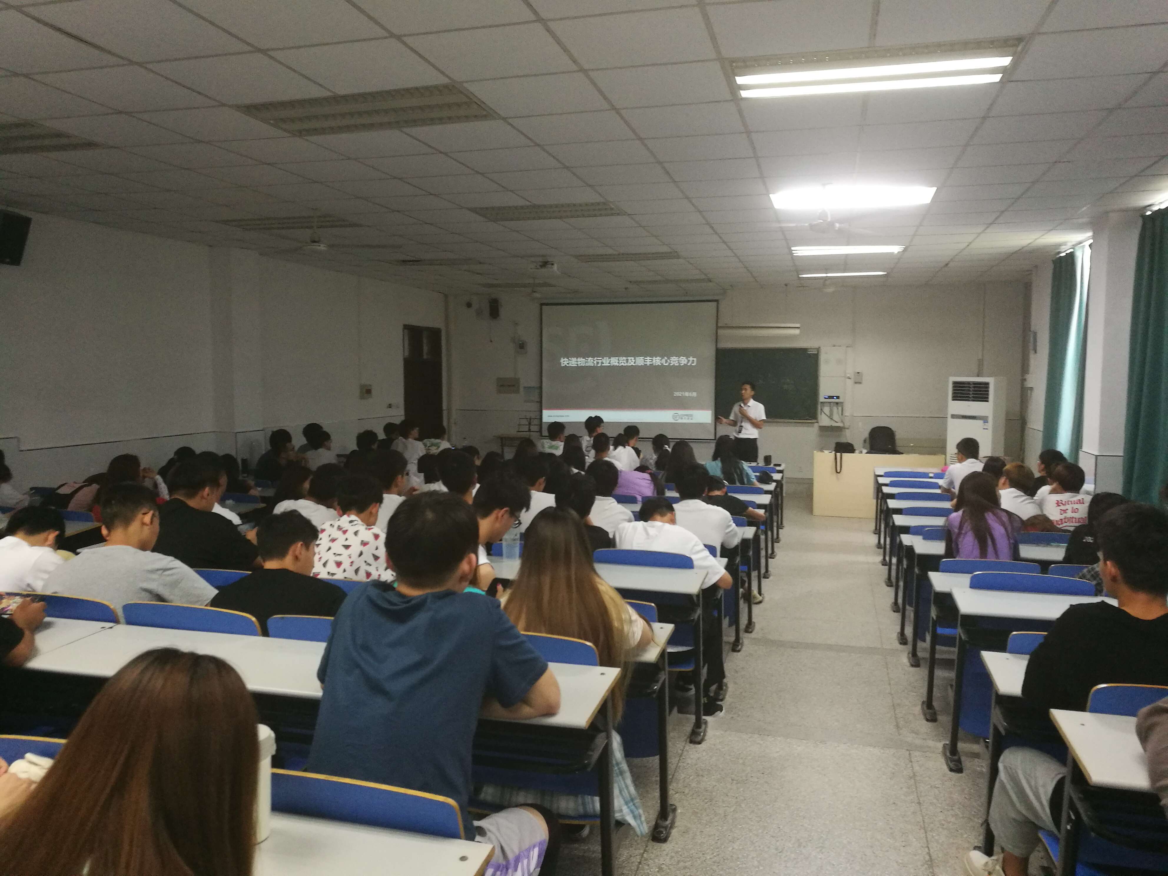 滁州顺丰速运经理李亮,向同学们介绍了滁州顺丰目前的发展概况以及物流未来的发展趋势,欢迎同学们前往滁州顺丰参观和工作。张莹助理是金沙威尼斯欢乐娱人城2007级的优秀毕业生,分享了自己就职于顺丰的感想和体会,并就学生提出的问题进行了详细的解答。