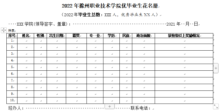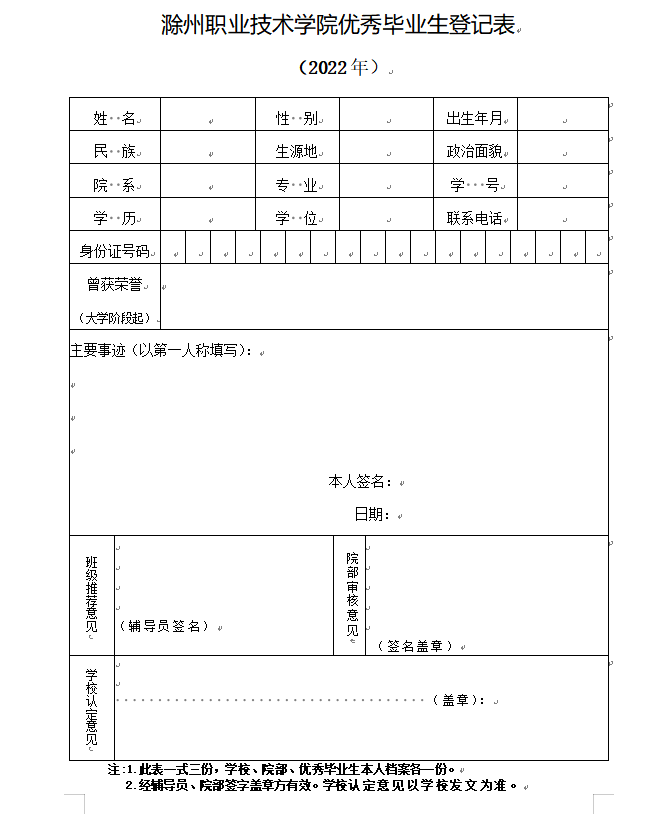 优秀毕业生登记表