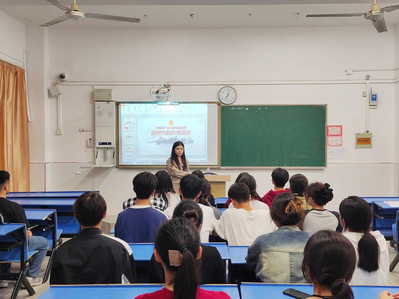 团课正式开始前,主讲人先对本次团课的主题背景、目的及环节进行简要介绍。随后结合演示文稿带领全体入团积极分子回顾了五四运动,了解了五四运动的历史意义,讲述了如何发扬五四精神,做新时代的奋斗者。其中重点以“五四运动历史事件”、“五四精神时代内涵”和“如何做一个合格共青团员”三个方面为切入点阐述了当代青年使命及未来发展目标,引发了大家激烈的反响和热烈的讨论。最后,主讲人引导同学们铭记历史,端正入团动机,珍惜学习机会,号召入团积极分子要提高思想政治修养,牢记习近平总书记的殷切寄语,听党话、跟党走,让青春在实现中华民族伟大复兴的火热实践中绽放青春之花!