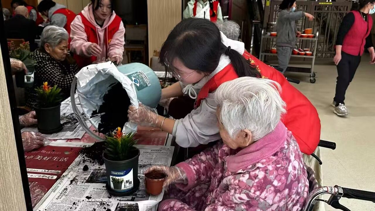 为了弘扬“敬老·爱老”的传统美德,宣扬雷锋精神,同时传递“爱绿·护绿”植树精神,2024年3月12日上午,商学院学生会一行13人,在学生会主席团的带领下,前往滁州市丰华养老院开展“播种绿色 收获美好”盆栽DIY志愿服务活动。