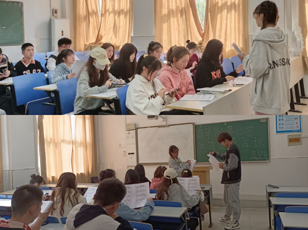 会上学习部部长任美琪将纸质及电子出勤表发给各班级学习委员,向各班学委讲解出勤表的填写格式,规定在每晚12点前将出勤表发在学委群中,并呼吁各班学委在学习方面积极起到模范带头的作用,全面提升自己的综合素养,带动班级同学养成传帮带的良好班风。此外,高梦祥部长还针对出勤表的真实性及严谨性问题作出明确规定,要求各班学委不得出现包庇行为,需端正态度,让量化表格发挥出真正约束作用。