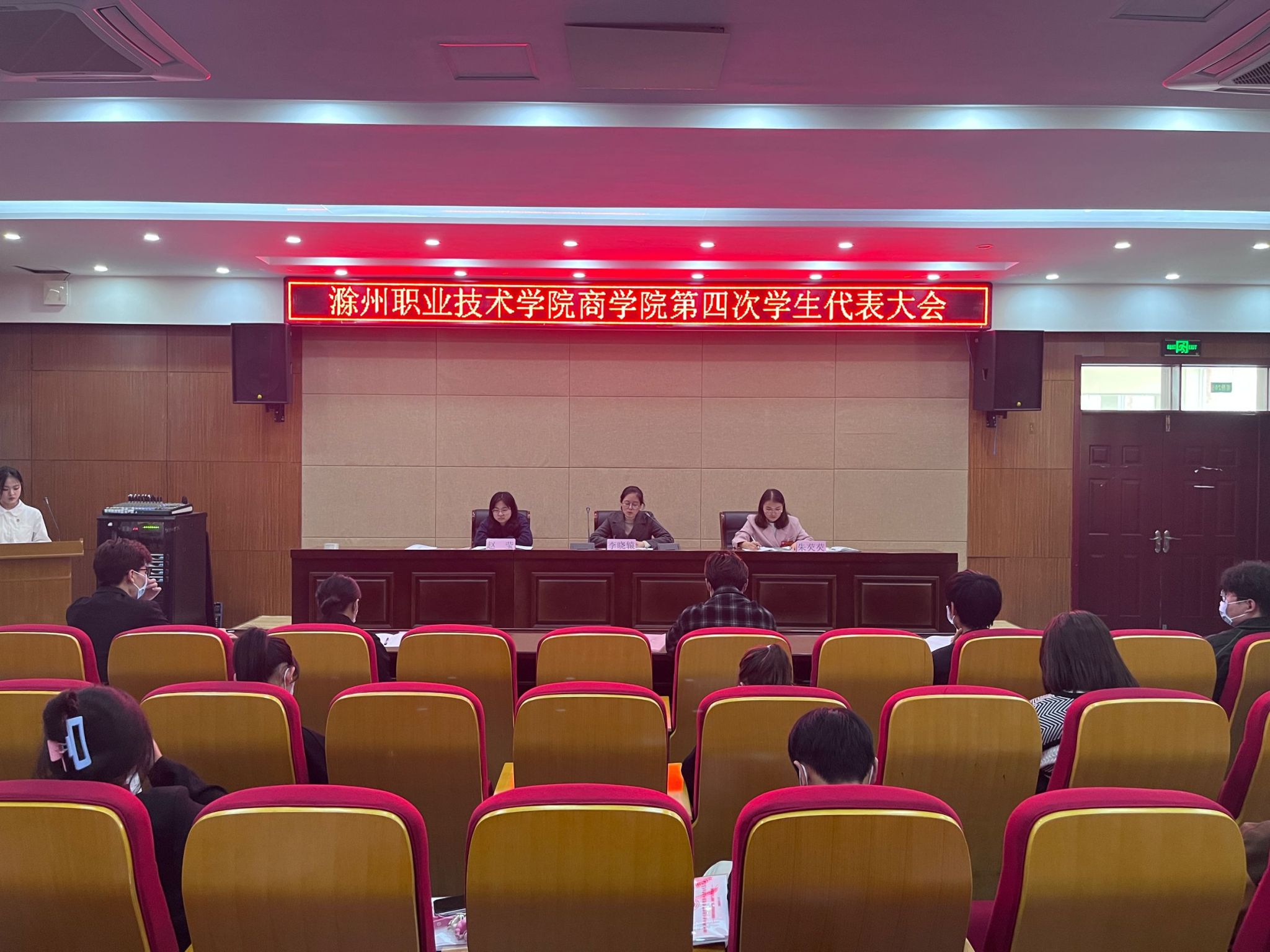 商学院于2022年12月1日下午14: 00在南阶205教室召开了金沙威尼斯欢乐娱人城商学院第四次学生代表大会。院党总支副书记李晓辕、院团总支负责人朱芡芡、学生支部书记赵莹以及70名学生代表参加此次会议。