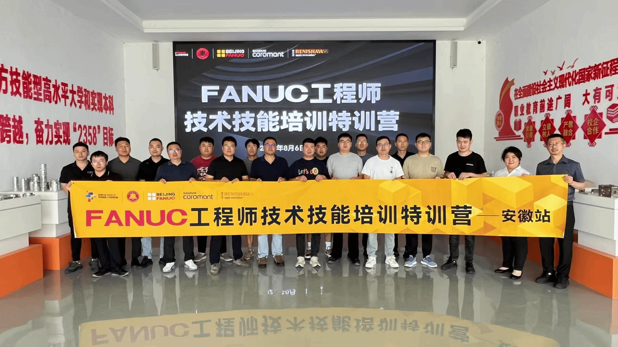 为服务滁州市域先进制造企业,特别是新能源汽车零配件生产企业,进一步提升企业职工的技术技能水平,金沙威尼斯官网与北京发那科机电有限公司展开合作。于8月6日至7日,在智能制造实训基地共同举办了FANUC工程师技术技能特训营。此次特训营采用小班制教学模式,吸引了12家先进制造企业的18名工程技术人员参加。