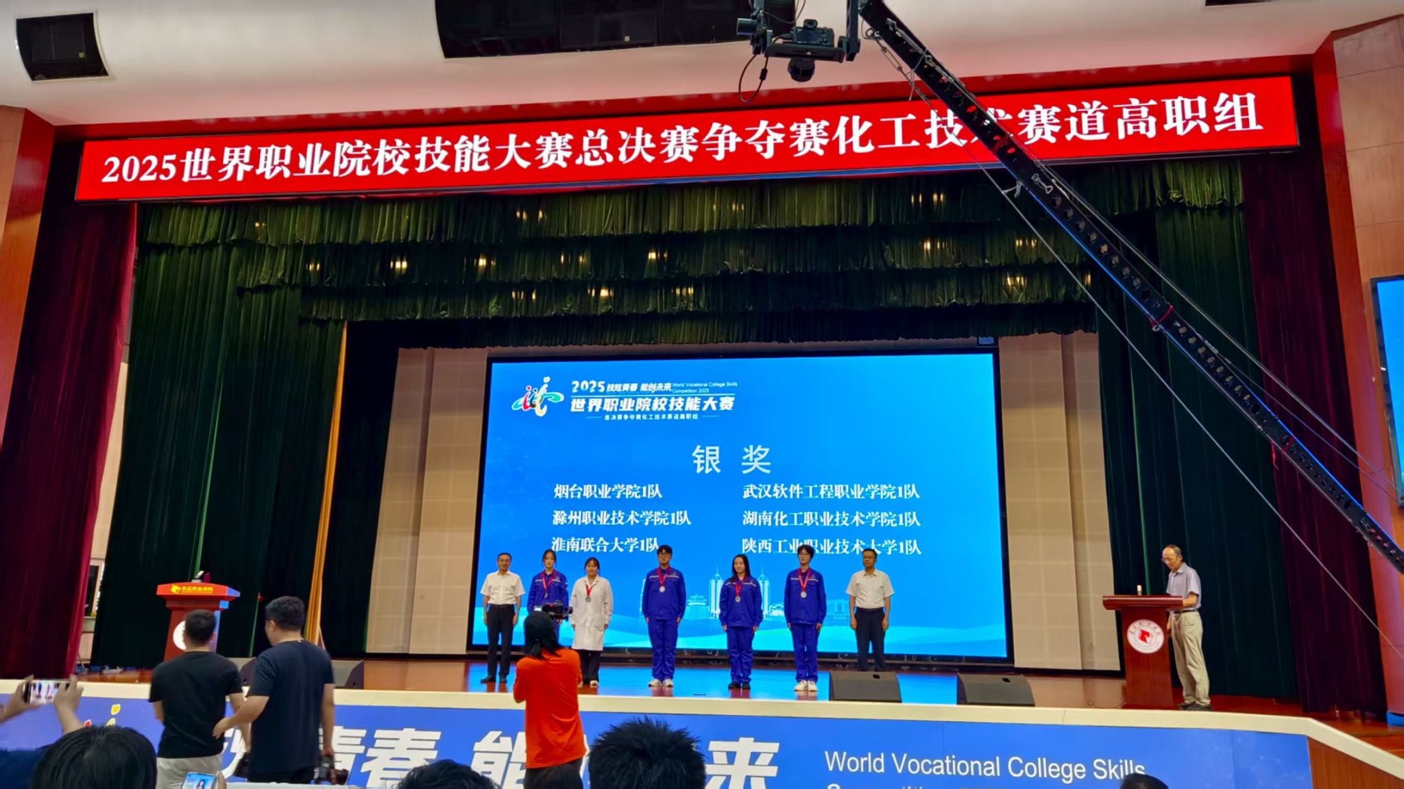 8月26日至30日,2025年世界职业院校技能大赛化工技术赛道(高职组)争夺赛在枣庄职业学院激烈展开。此次比赛作为世界职业院校技能大赛的重要组成部分,吸引了来自全国31个省(直辖市)的105支代表队参与角逐。金沙威尼斯官网食品与环境工程学院的胡婉婉、李傲然、杜峰三位同学,在王磊、汪蓓蓓两位指导老师的悉心指导下,历经多轮比拼,于众多选手中脱颖而出,斩获银奖。该赛事聚焦化工生产工艺优化、质量检测、安全操作等核心技能,比赛过程中,选手们不仅要在规定时间内完成复杂的化工实验操作,精准分析实验数据,还要应对各种突发情况,对选手的专业能力与临场应变素养提出了极高要求。金沙威尼斯官网三位参赛选手凭借扎实的专业知识和丰富的实践经验,冷静应对,最终取得优异成绩。