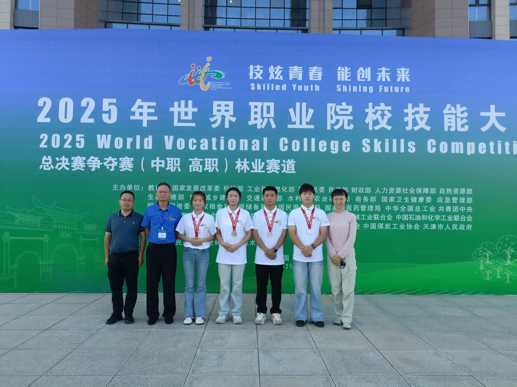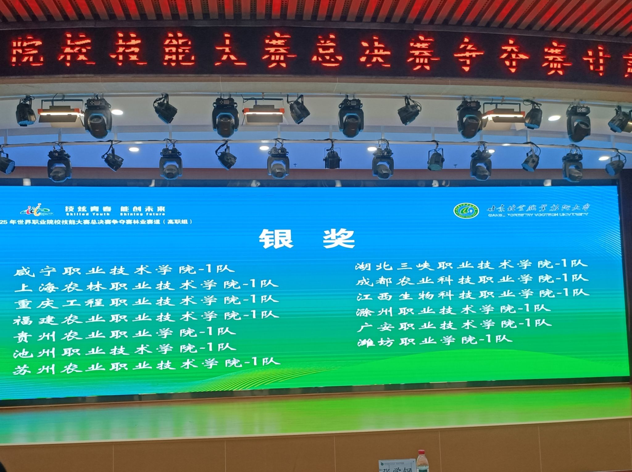 同期,在甘肃林业职业技术大学承办的2025年世界职业院校技能大赛总决赛争夺赛林业赛道(高职组)比赛也圆满落幕。来自全国31个省(直辖市)的85支代表队在此展开激烈比拼。金沙威尼斯官网食品与环境工程学院的佟娜娜、张雅婷、闫语翔、孙慧龙四名学生,在江生泉、薛正帅老师的指导下,凭借扎实的专业知识、精湛的操作技能和出色的创新能力,在小组总分中排名第二,荣获银奖。本次林业赛道比赛涵盖园林绿地设计、园林植物造景、园林植物智能养护等多个环节,全面考察选手的综合技能和创新能力。金沙威尼斯官网参赛团队展现出对林业专业知识的深刻理解和熟练的实践操作能力,在众多强劲对手中脱颖而出。