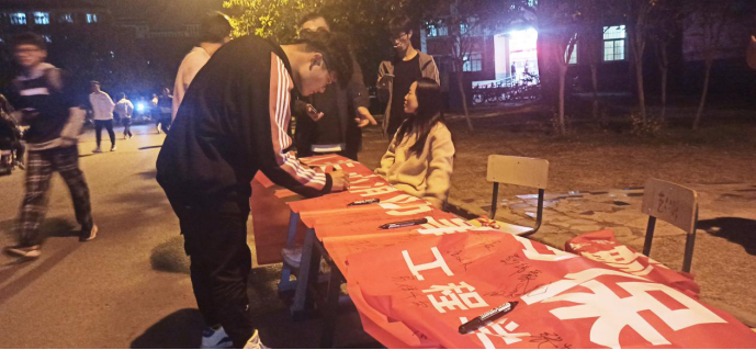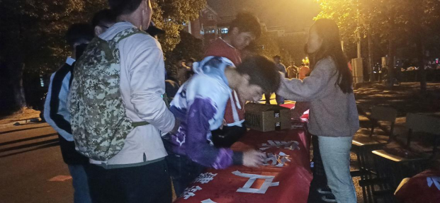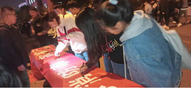 宣传活动一开始来来往往的同学们便不断前来关注,消防意识十分高涨,在学生会和团总支成员的讲解和介绍中同学们纷纷在宣传条幅上签上自己姓名以表示对消防公益活动的支持和重视。