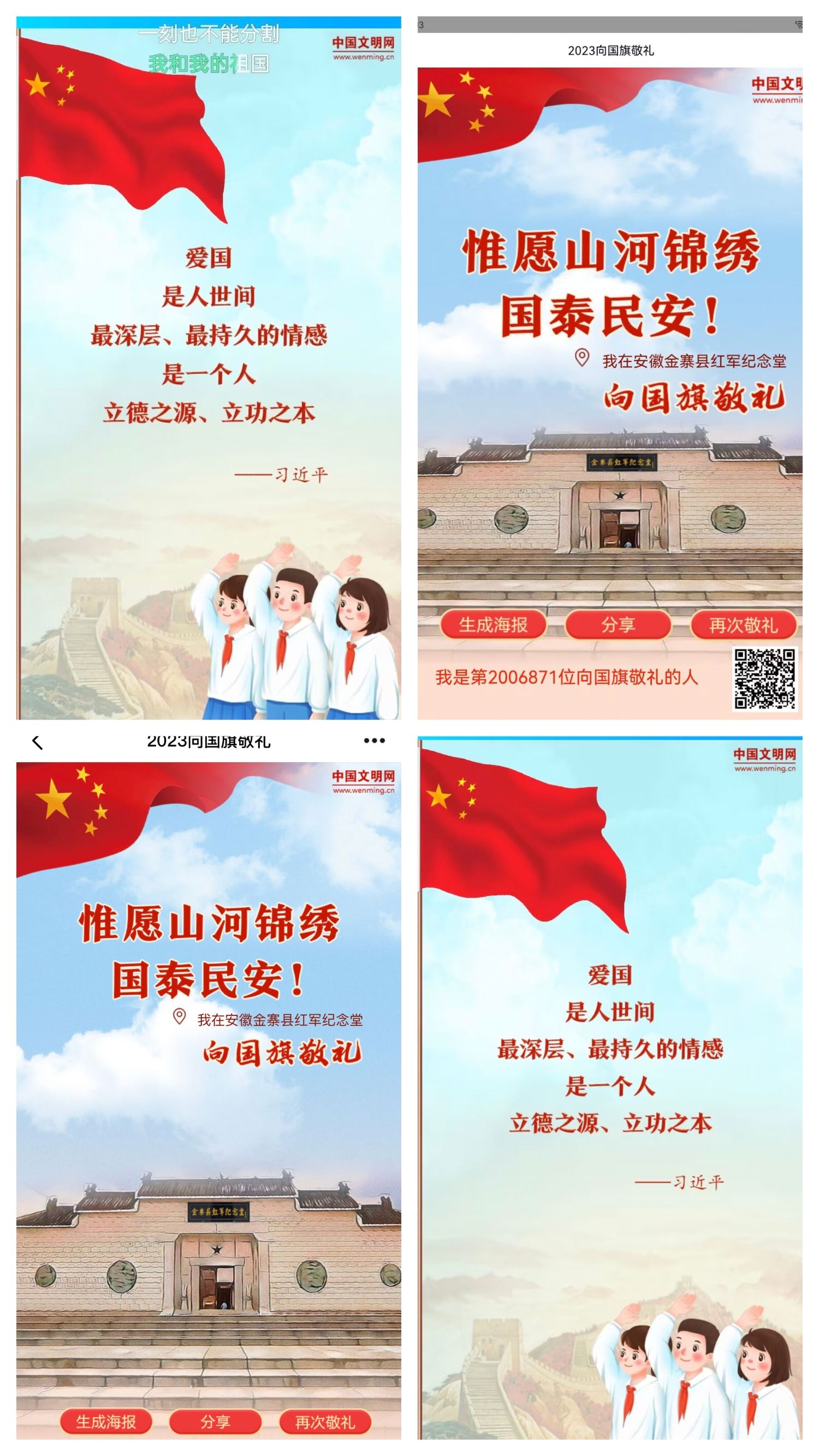 各班团支书将二维码、链接发到群里,同学们扫描二维码或者点击链接进去之后,选择好地区之后,我们就能看到五星红旗缓缓上升,上升之后我们就能看到习近平总书记留下的话语“爱国是人世间最深层、最持久的情感,是一个人立德之源、立功之本。”独特的动态设计互动板块、以同学们喜闻乐见的形式呈现升国旗、向国旗敬礼等环节。让鲜艳的五星红旗升起的同时使同学们内心的民族自豪感与爱国情怀也一同升起!