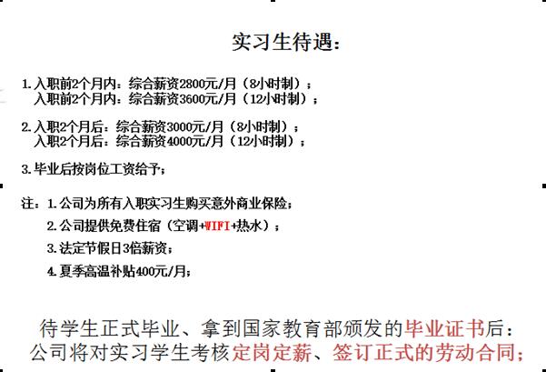 要求女生,工作地点99广场,实习期1200。联系人:许总 138-0550-0959。