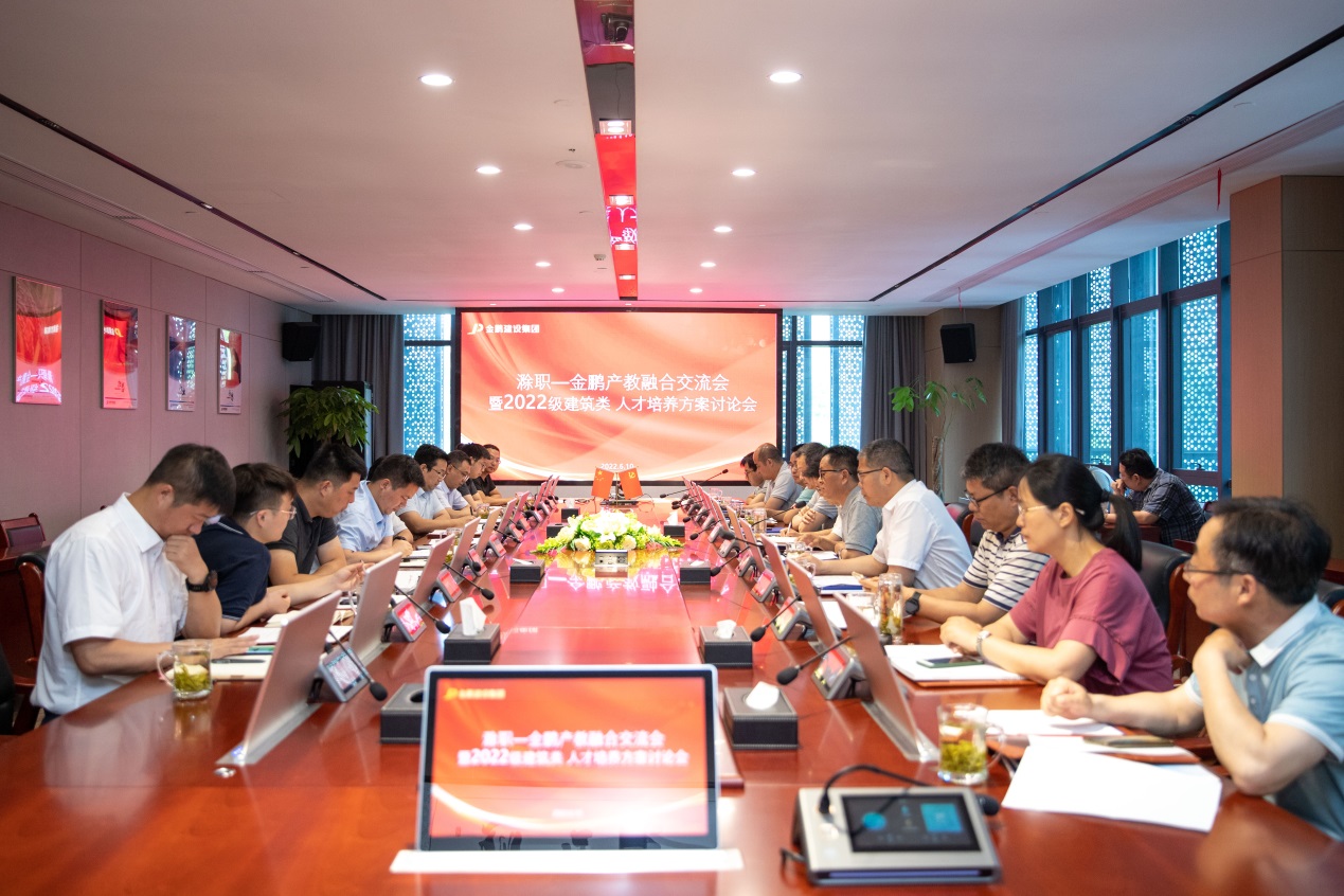 为进一步对接国家长三角一体化发展战略,服务地方经济社会发展,加强校企合作、产教融合,6月10日上午,金沙威尼斯官网与金鹏集团的“滁职-金鹏产教融合交流会暨2022级建筑类人才培养方案讨论会”在金鹏控股大厦举行,金鹏控股集团总裁孙元祥携集团副总裁胡家顺博士、许永及工程技术、工程管理、产业研究等方面负责人进行座谈交流。校党委委员、副校长苏有良出席了交流会,建筑工程学院院长朱永祥、总支书记刘文元、招就处副处长周多道、教务处副处长唐义武及建工学院副院长张国富等相关人员参加了座谈。会议上建工学院朱永祥教授主持。