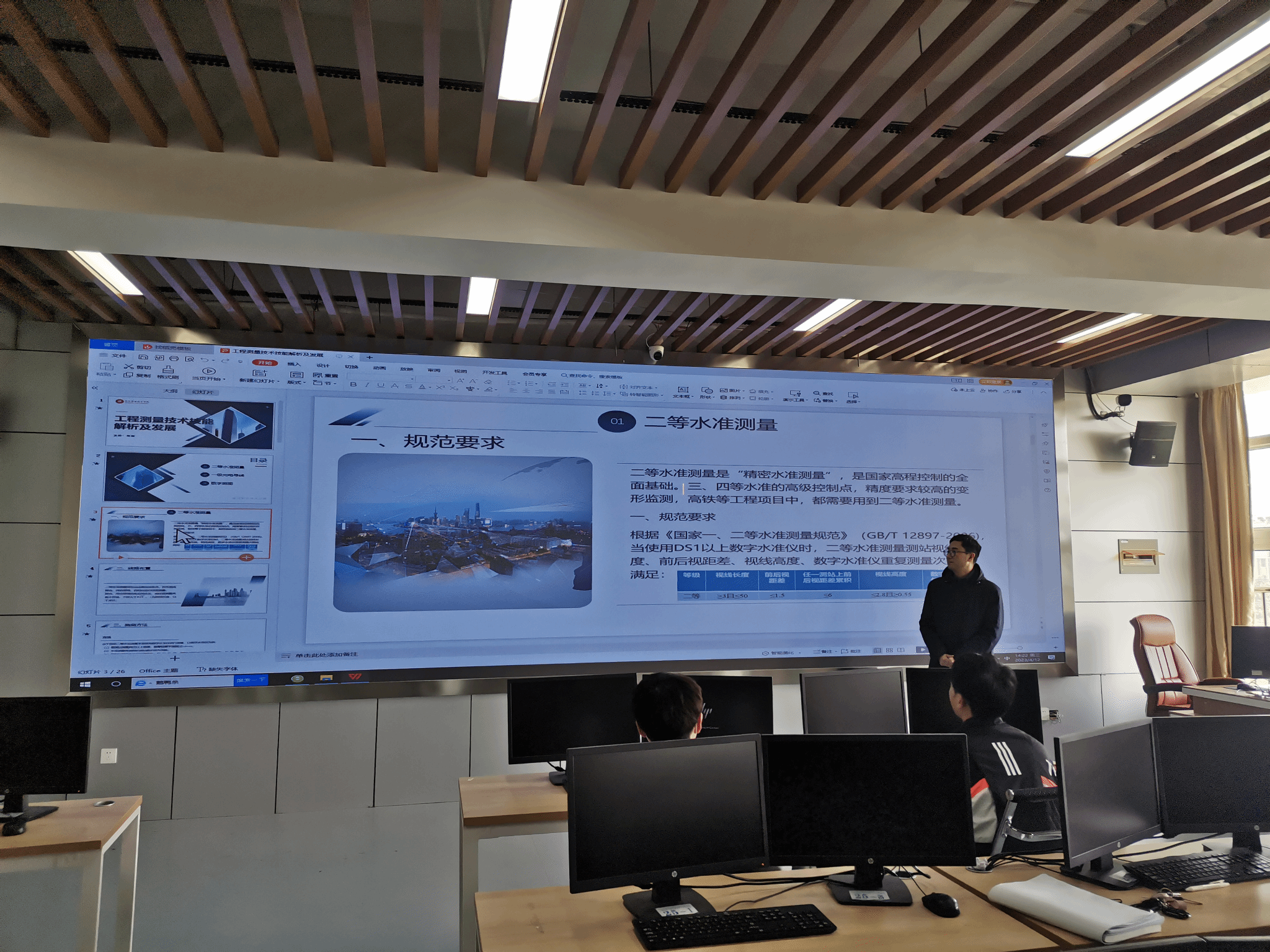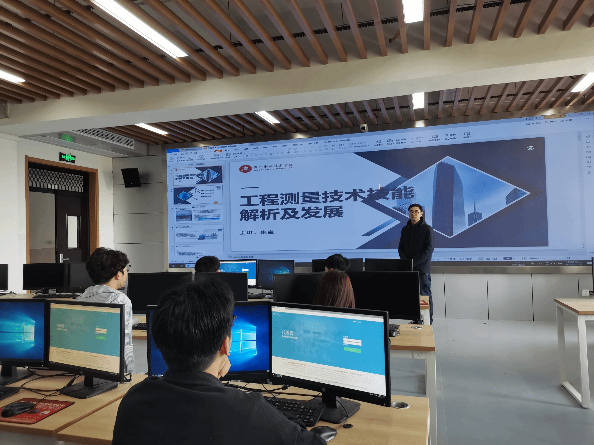 2023年4月12日下午15时,建筑工程学院朱宝副教授在建筑技术综合实训馆JG307教室,举办了题为“工程测量技术技能解析及发展”的讲座,建筑工程学院相关专业学生听取了讲座。