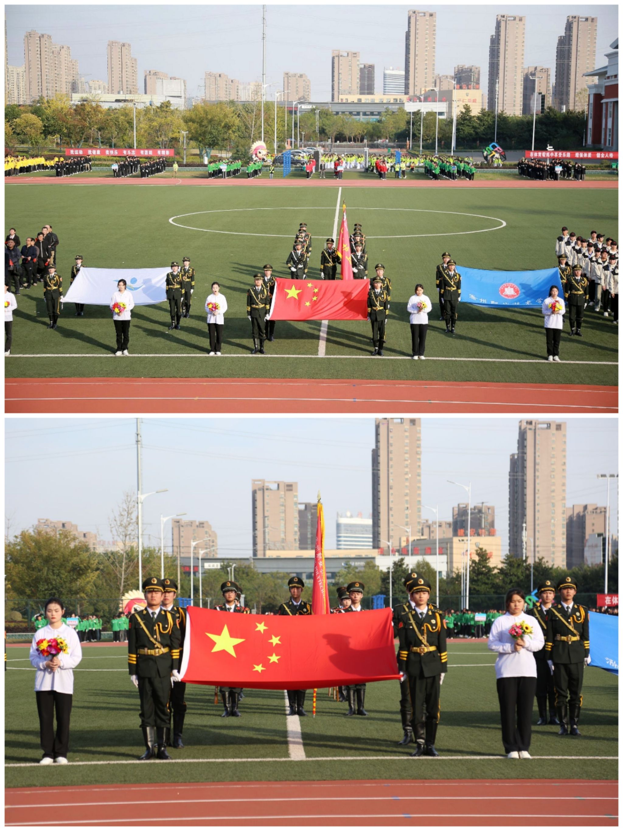 伴随着激昂的《运动员进行曲》,国旗护卫队、校旗会旗队、鲜花方队,裁判员方队、各教学院部师生代表队依次入场,以昂扬的姿态,喊着嘹亮的口号,迈着整齐稳重、铿锵有力的步伐走过主席台。让更多的人看到青春的价值,激发潜能,突破自我。在仪式过程中,有鼓舞人心的广播体操,他们热情洋溢;有步伐整齐的国旗护卫队,他们庄重严肃;还有各教学院部师生的方队,他们无一不展现着青春的活力。领导们相继发言,表示对本届学校运动会的期待,希望运动员们可以创造更好的成绩,对之后辛苦付出的老师们和同学们表示感谢。