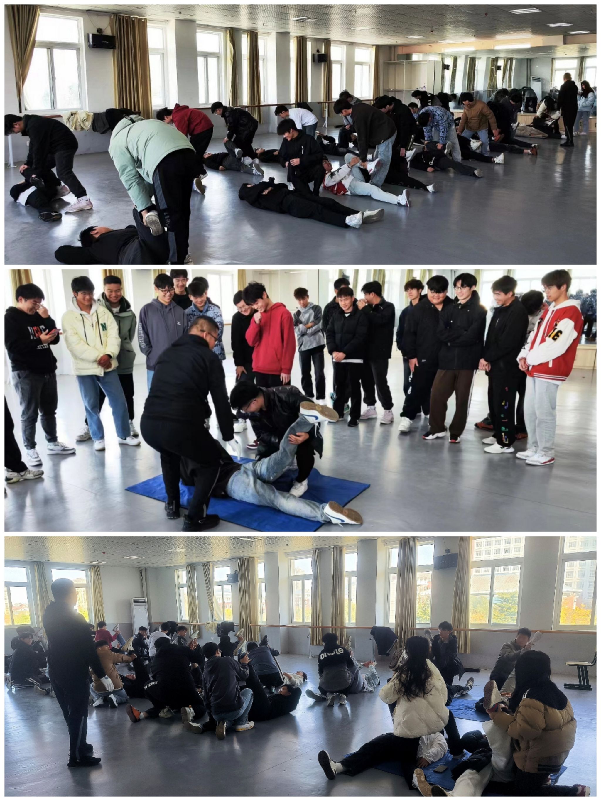首先培训老师为同学们介绍了马拉松的相关内容,让同学们更清晰的认识和了解马拉松比赛,并认识到此次志愿者服务工作的重要意义。紧接着从如何正确做好拉伸动作和拉伸过程中的注意事项两个方面对志愿者们进行细致的讲解,并让同学们两两一组进行尝试。保证运动员在比赛结束得到更好的拉伸,使身心得到放松。