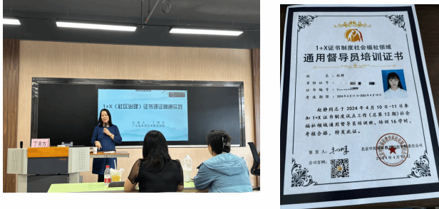 为了深化产教融合、助力人才培养,全面深入推进1+X证书制度试点工作,4月8--11日,由北京中民福祉教育科技有限公司主办、广东省外语艺术学院承办的“2023年社会福祉领域1+X证工作表彰会暨通用督导员、技术员培训班”在广州举行。我院教师赵静参加了此次培训并通过考核。
