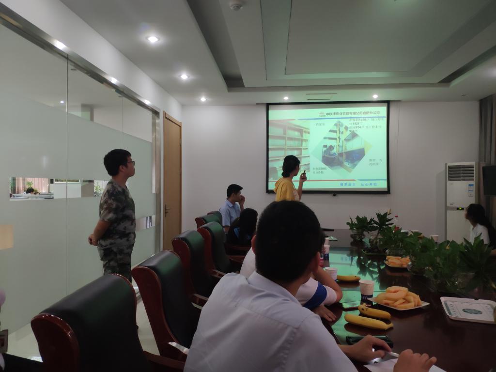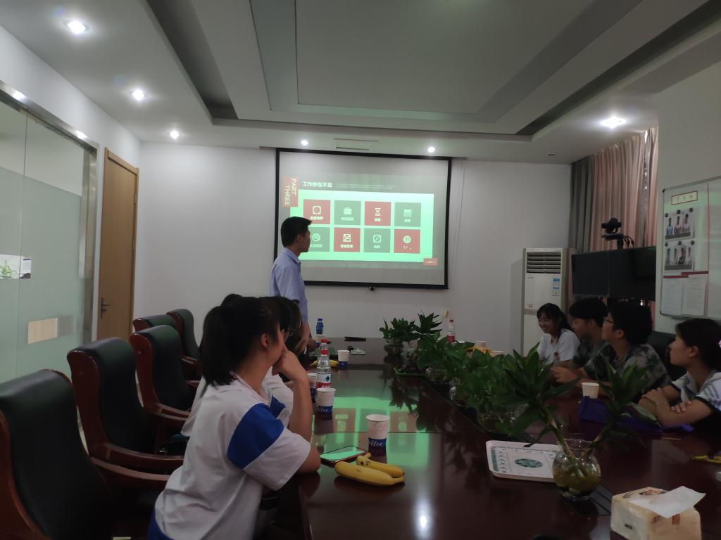下午3点钟,在公司会议室,每位实习生都做了PPT汇报,对自己这一个月来的实习进行了总结。这一批实习生大部分都是“中铁班”的订单生,有10位学生在中铁建合肥分公司实习,3位学生在中铁建杭州分公司实习,还有在长城物业公司等其他公司实习的学生也都做了实习汇报。通过汇报了解到,学生在刚接触到行业的实践工作的时候,都会有一些不适应,但是通过这一个月来的努力,都有了不同程度的进步。我相信,在接下来的跟岗实习以及顶岗实习的学习中,会有更大的进步。等到明年拿到毕业证,从学生正式走向社会的时候,一定会脱胎换骨,能够在各个工作岗位独当一面,成为公司的顶梁柱。