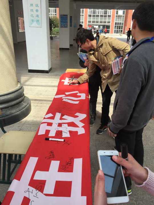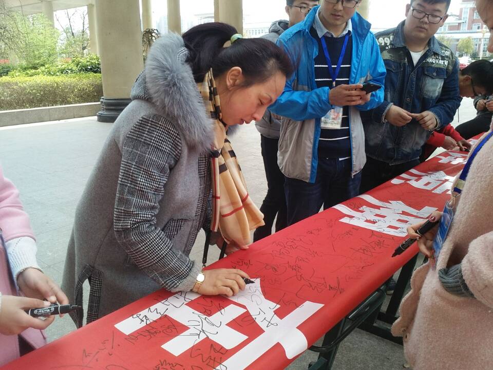 3月24日,土木工程系团总支举行了以“雷锋精神常在、服务奉献社会”为主题的志愿者签名活动。倡议全系志愿者积极行动起来,学习雷锋精神、践行雷锋精神,做雷锋精神的继承者和传承者,永葆雷锋精神活力。图为土木系教师和学生们在活动现场踊跃签名。