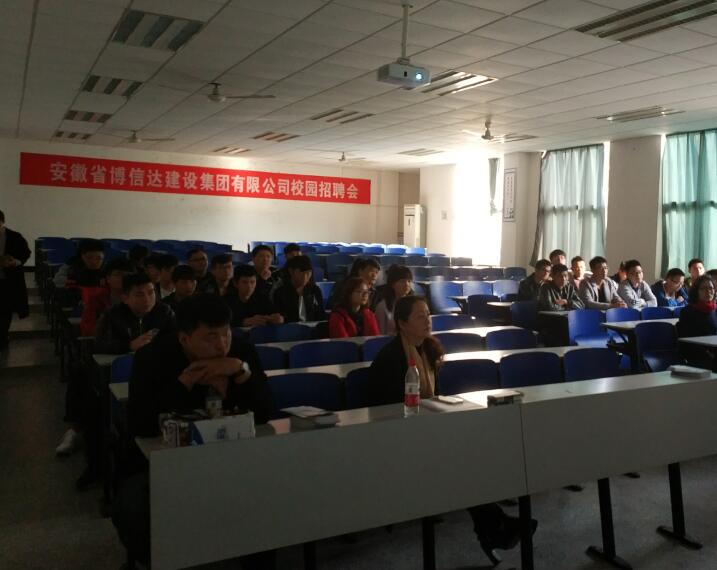 近日,我院土木工程系的系2018届毕业生专场招聘会正在如火如荼地举行着,多家建筑业企业纷纷来到我系,包括安徽省博信达建设集团有限公司、安徽省永信人防工程建设监理有限公司等等省内知名企业。据统计,目前已有不少学生与这些企业初步达成就业意向。