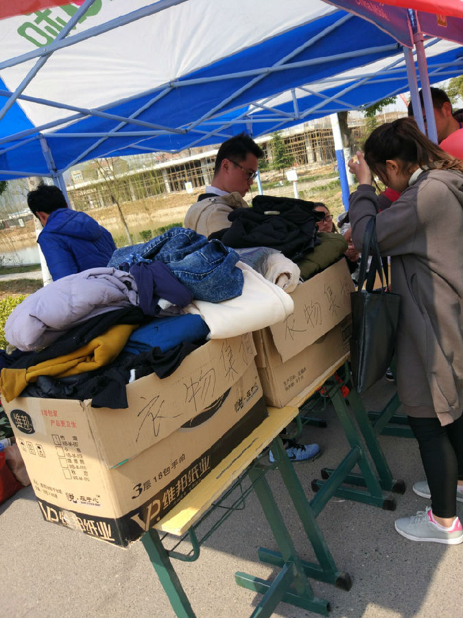 募捐当日,我系秘书部和生活部学生会成员积极参与到该活动中,大家各司其职,活动组织的井然有序,不到几小时就收集到干净整洁的衣物上百件。随后,我系学生骨干了解到“龙蟠”社区设有“公益环保旧衣回收箱”,并定期会有相关部门对捐赠衣物进行分拣、消毒、整理,送往需要地区和困难人群,便于3月9日下午5点与该社区的物业管理人员取得联系,预计将同学们捐赠的衣物全部投放至该小区。
